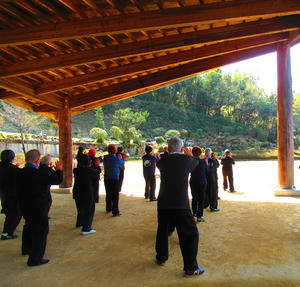 弟子たちは秘伝の技の伝授を期待して集まっていたが先師の言葉はく「詳問用意終何在,延年益寿不老春」と答えたそうです. 日本語で太極拳の最終的な目的は,「アンチエイジング,心身ともの健康の実」であると。
