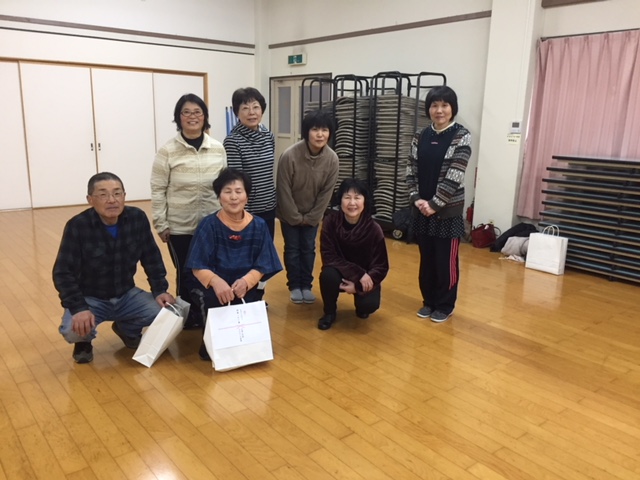主事さんから年40回以上練習に参加した方2名、30回以上2名(男女)に記念品を贈りました。