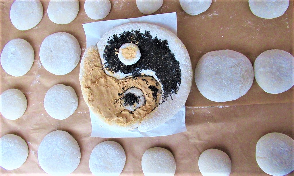 には「己を研く」、そして大円の太極図は「己を捨てる」。この境地に