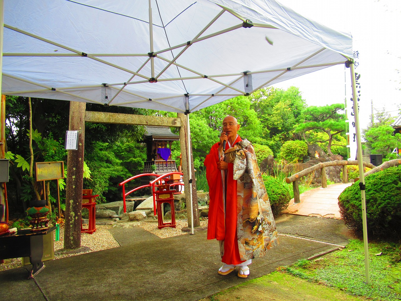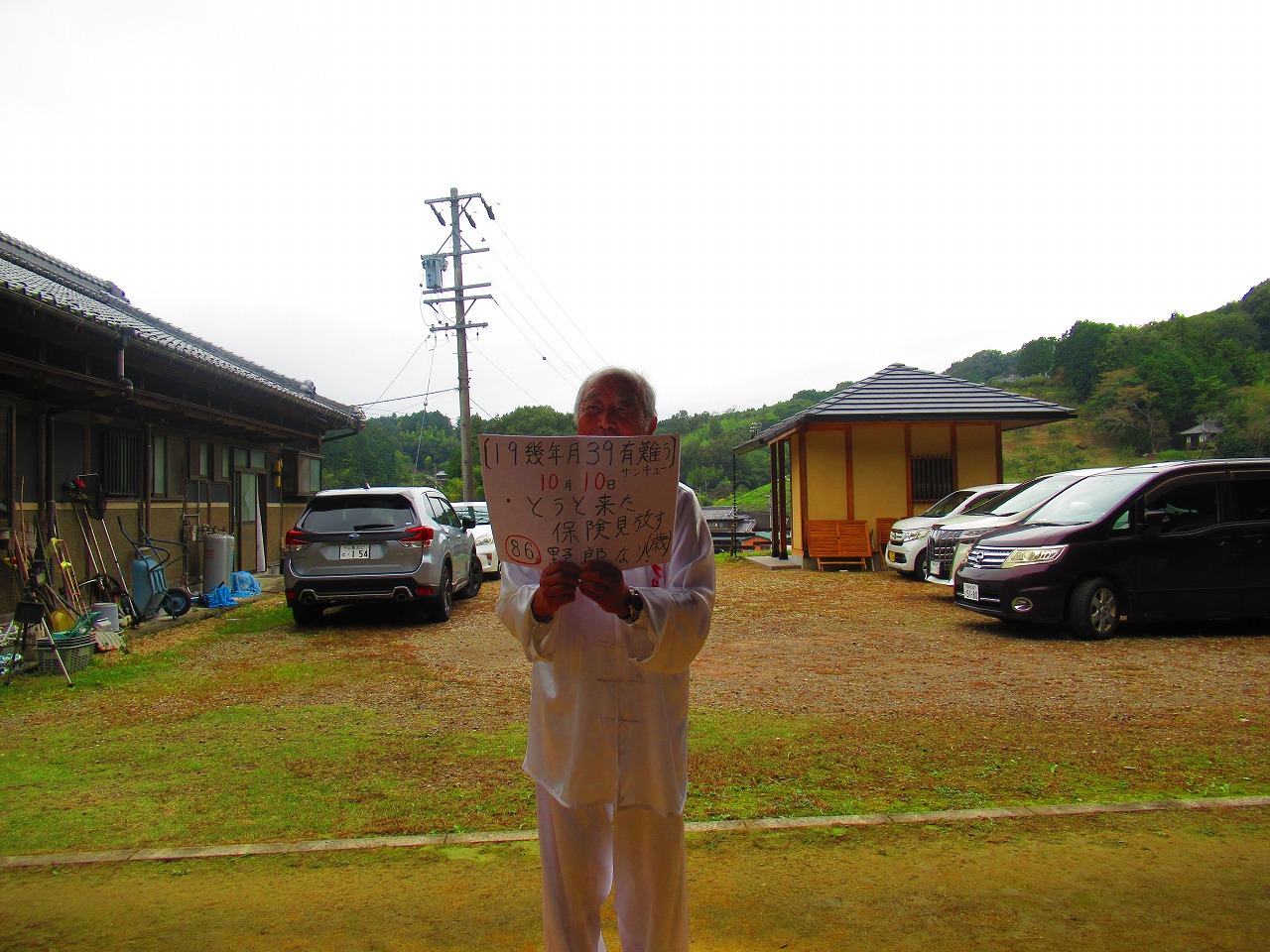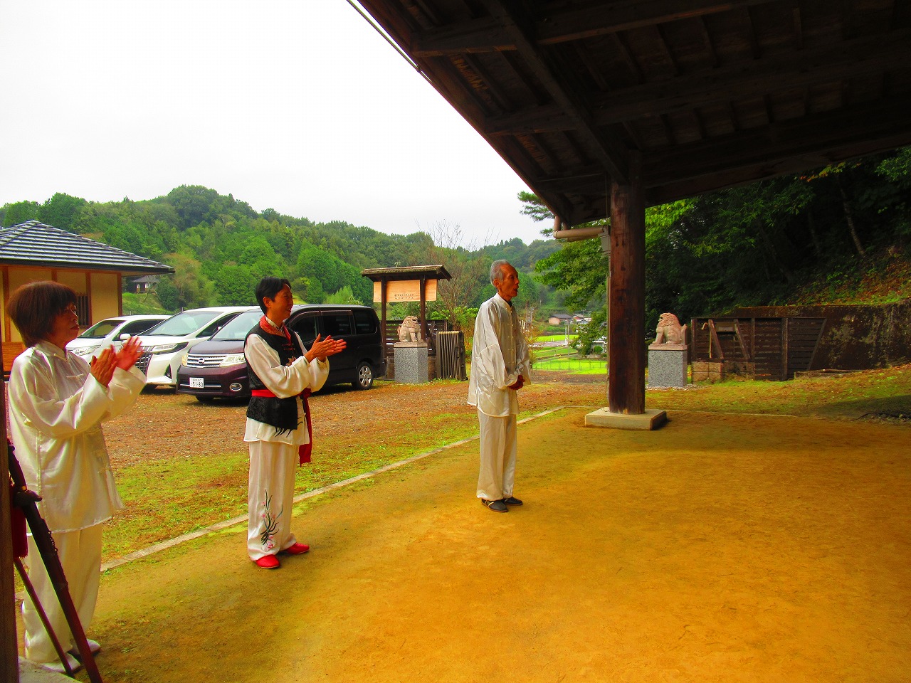 当日は天気予報による「雨」が降らず薄曇りで時折太陽の輝が射し、道場開所