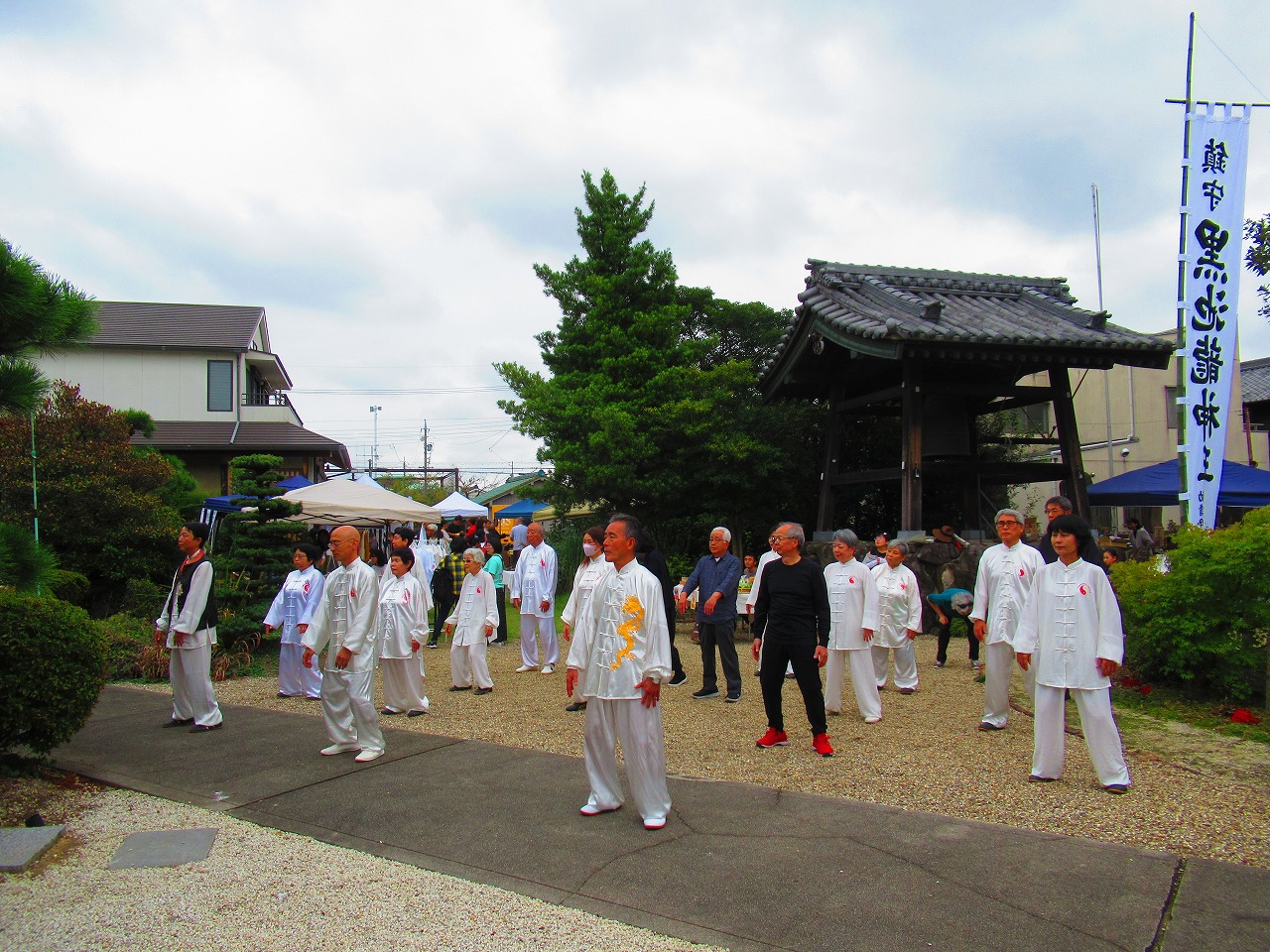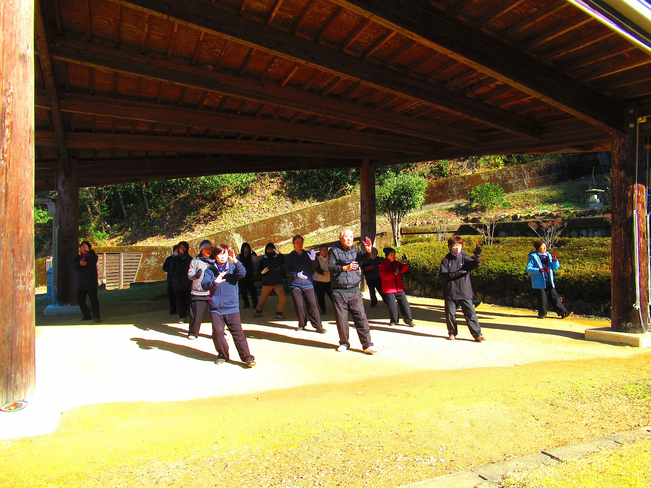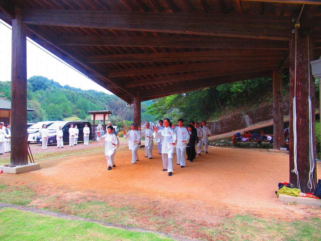 健康長寿を祈願し、飛騨川沿いの広場で太極拳練習を行いました。