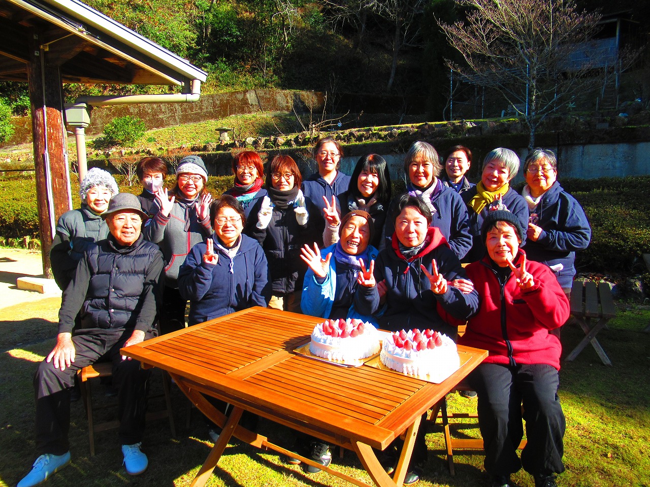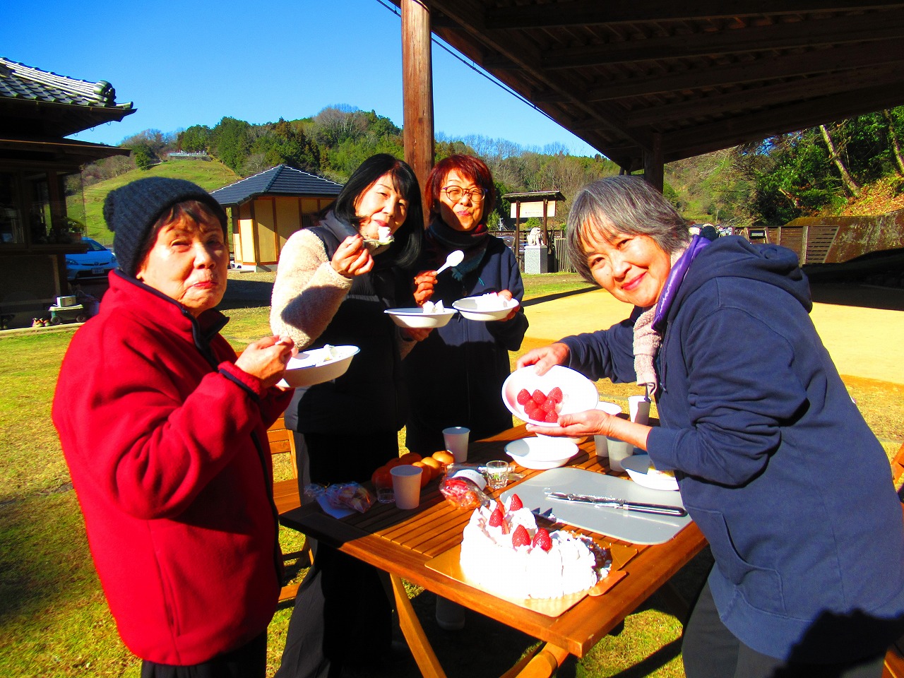 冬晴れの凛とした青空の下、太極山荘に仲間が集いました。