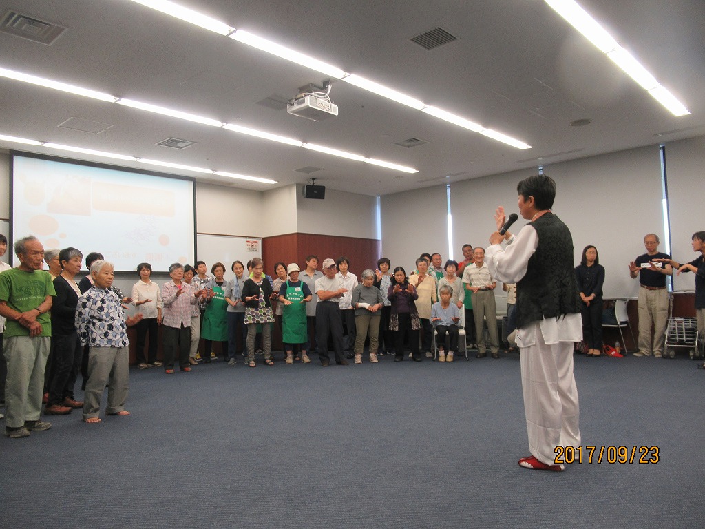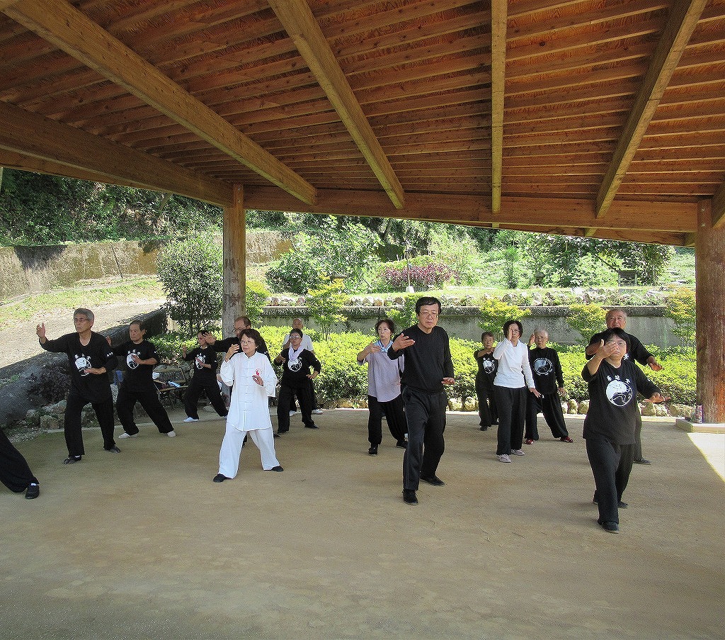 参加者が伝統太極拳による健康術で大いに盛り上がり、最後に