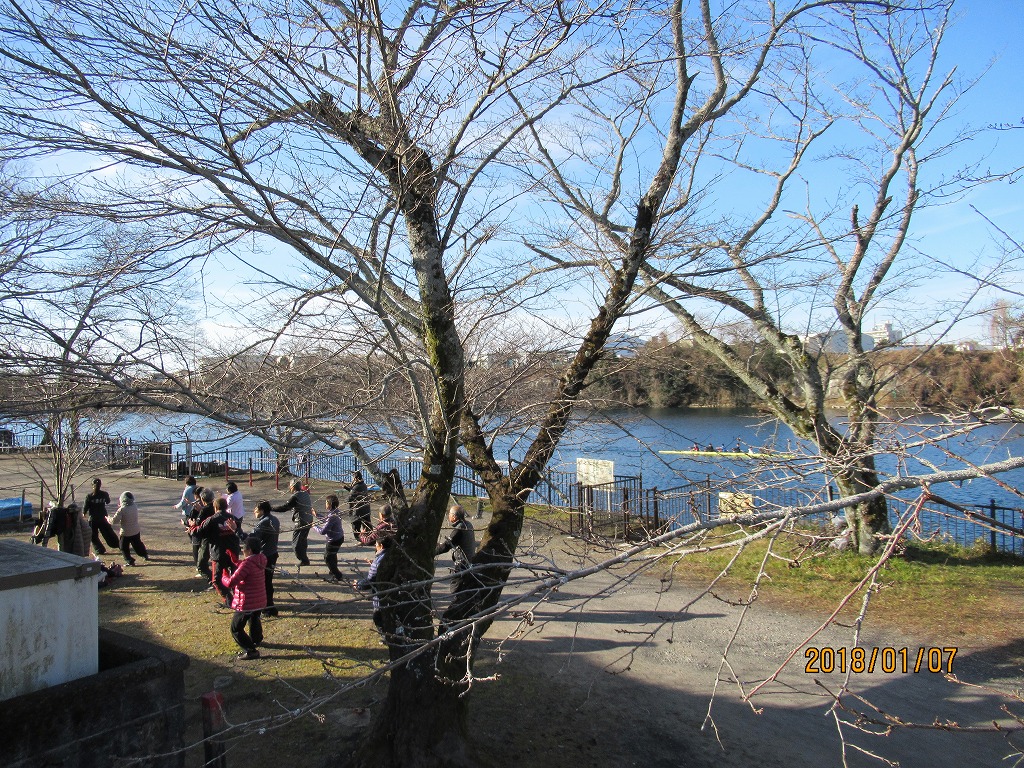 翌7日は中山道太田宿を訪ね、昨年末に掲載した「大人のためのファンタジー・初夢に願いを込めて」日本の中心、身体の中心、太極拳の丹田と一致した廉譲堂太極山荘を中心に「新日本の健康長寿街道」創設スタートをきる事となりました。さっそく中山道太田宿木曽川沿いで練習です。