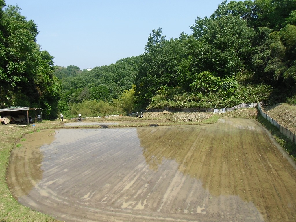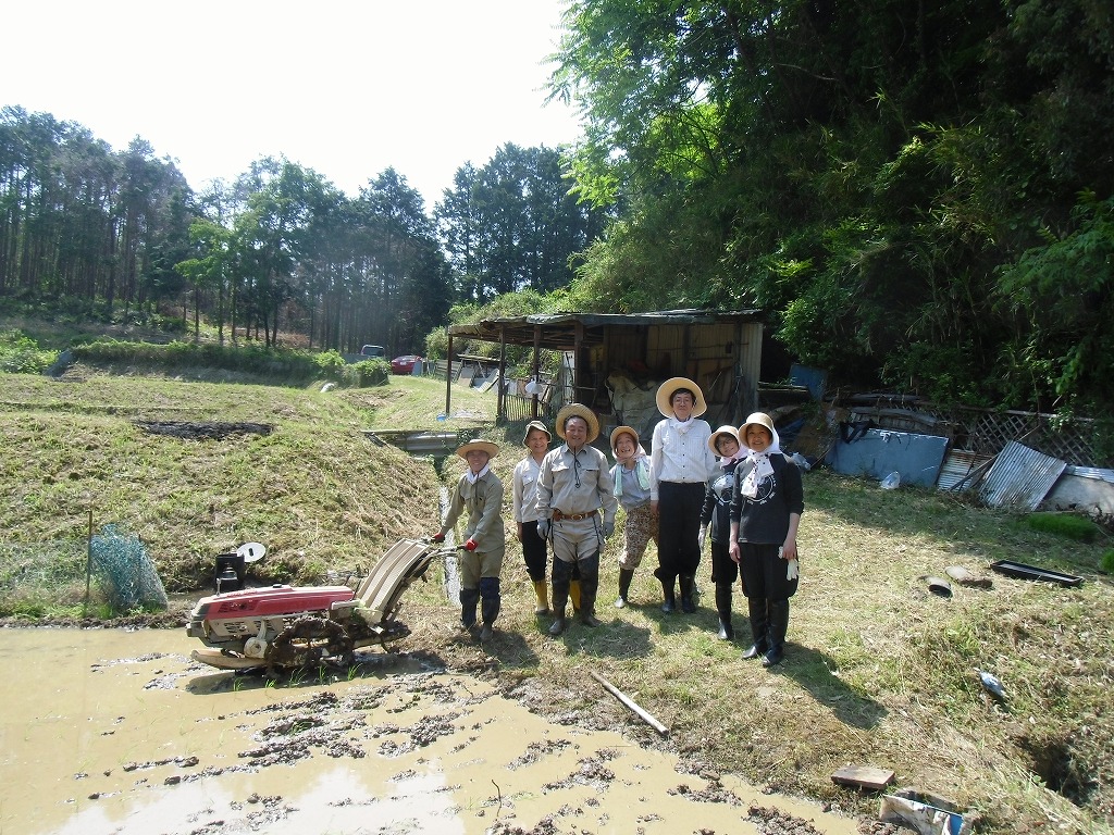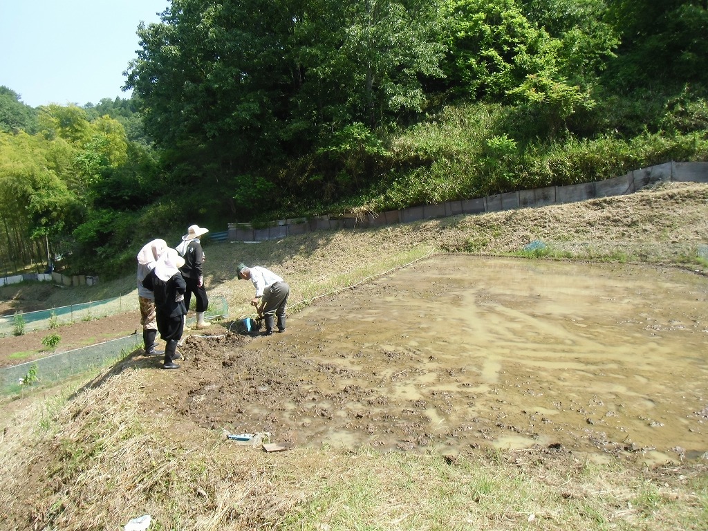 田植えを行いました。地元の勉さん、ご両親から水田を