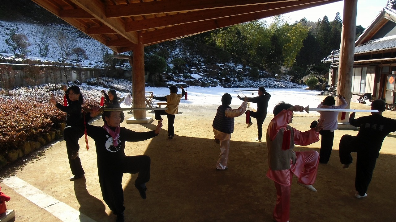 太極拳練習は何時でも何処でも牛が座ることが出来る程度の場所さえ有れば己自身の心掛け次第です。1月は第2週、3週の週末前夜は積雪を伴う真冬日となりました。そんな中で練習に打ち込む皆さんの姿を紹介します。
