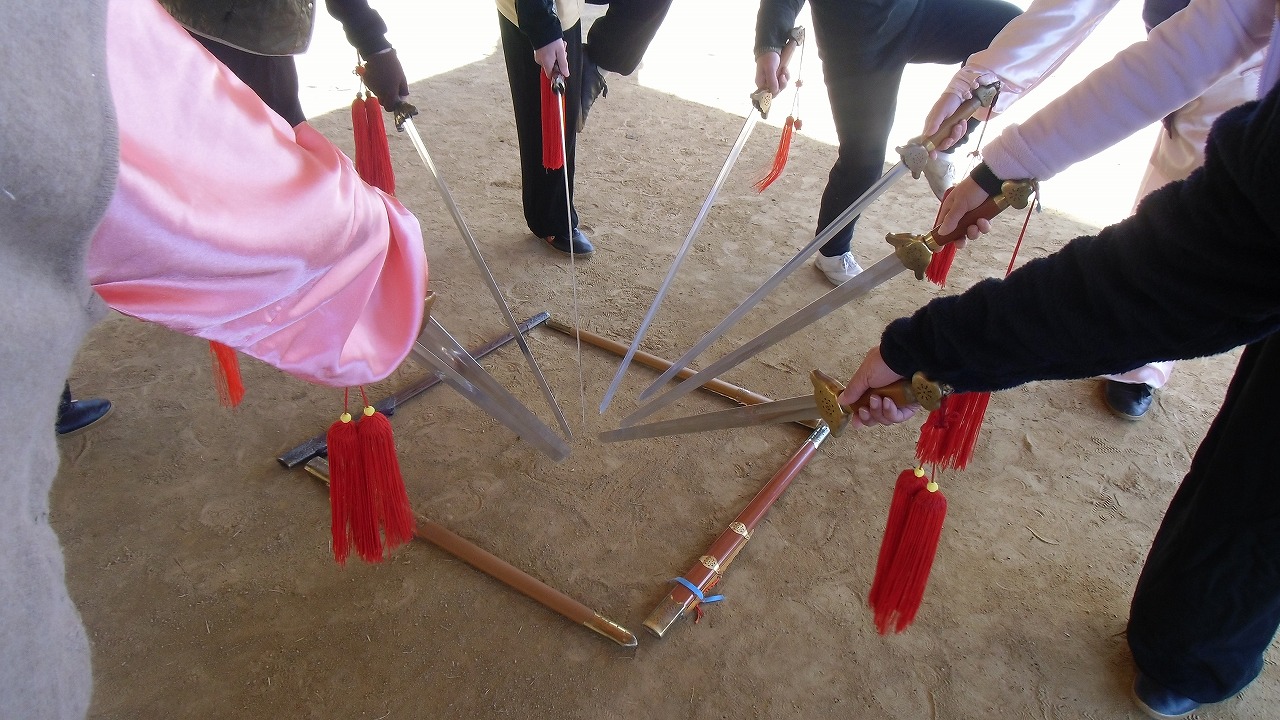 昨年の道場開所4周年記念大会では、人を導く天の神々「神ってる」のお話をしましたが今日はそれに続くものです。太極剣の中に潜んでいる生き物、神々のお話です。剣の套路の中には拳と違って多くの生き物、神々が出てきます。昨年春の剣の写書の時、皆さん数えたことを覚えていますか?いくつありましたか?