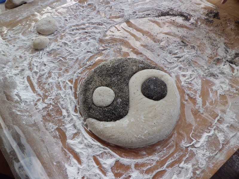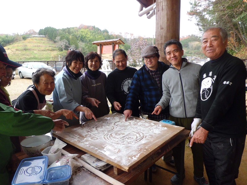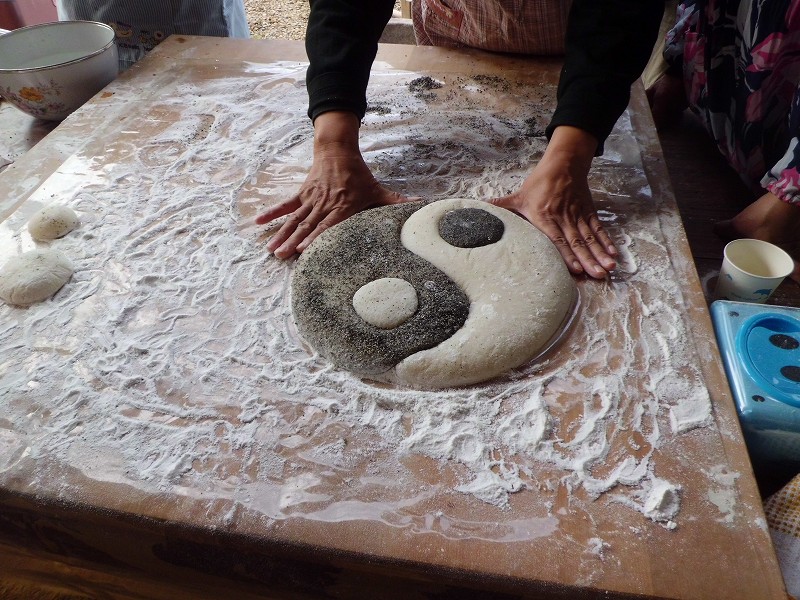 一番重要な太極拳陰陽図のお供え餅は会長自ら太極拳の技「按」