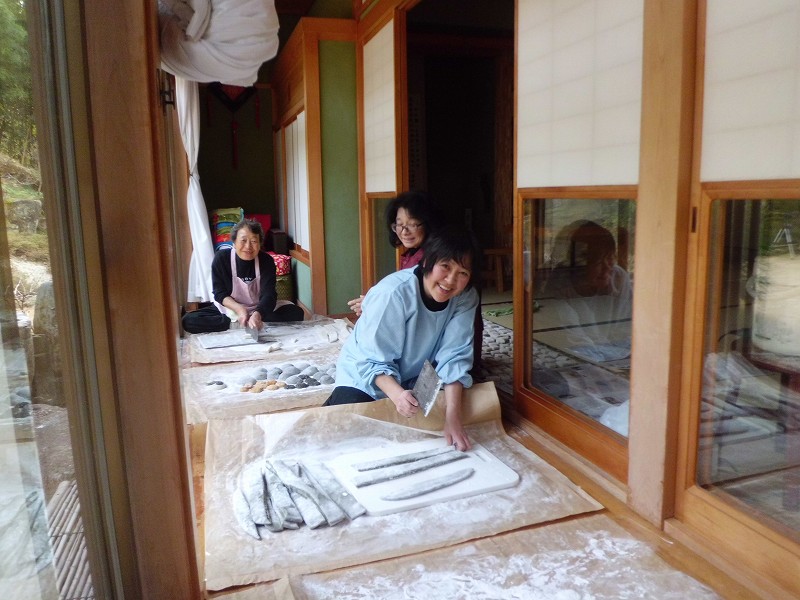 翌日の餅つきに備え当日夜は餅米30kgの米とぎ、水につけ置き,
