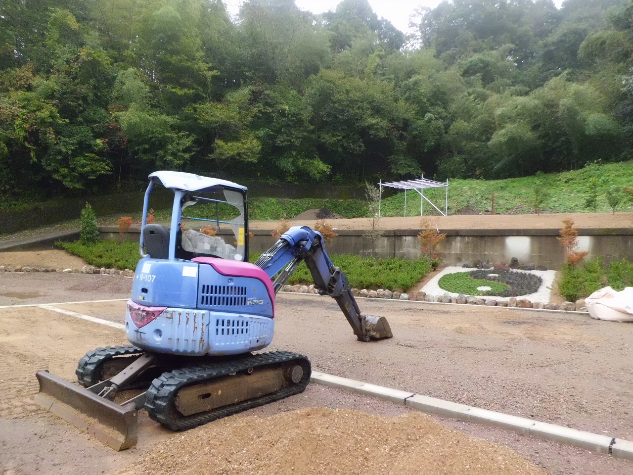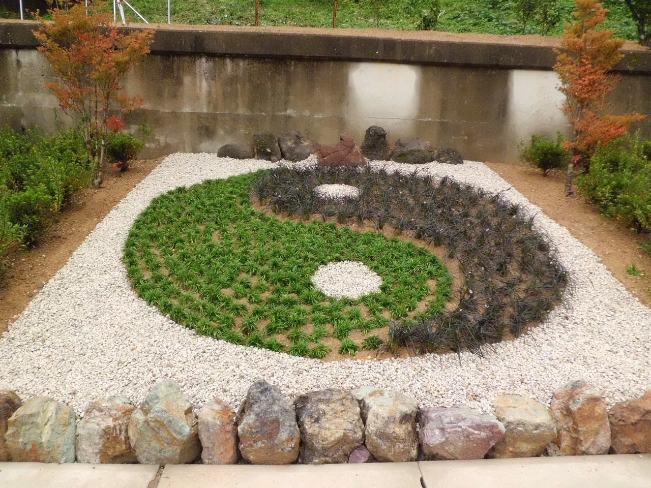 日本庭園の中に太極拳のシンボルである陰陽マークが植樹されました。