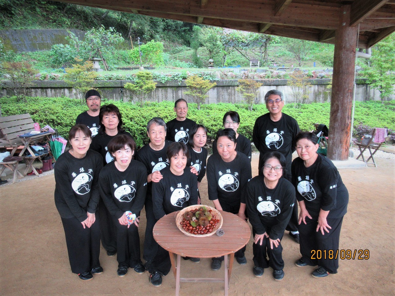 今日も皆さんで栗拾い、イガに包まれた大きな栗にご満悦、金木犀の香りで一時の安らぎも束の間、早速、「金鶏独立」片足立ちの練習です。