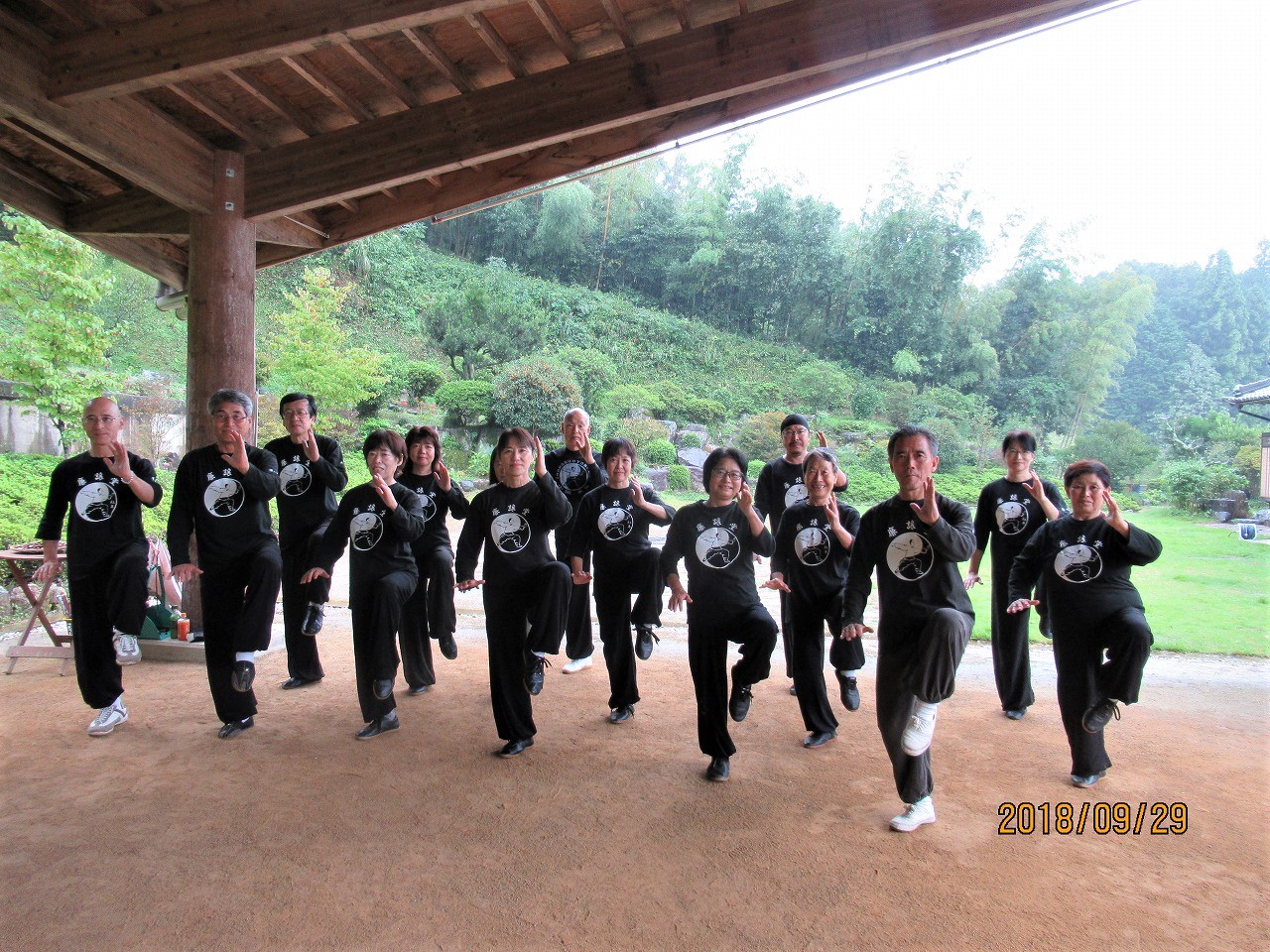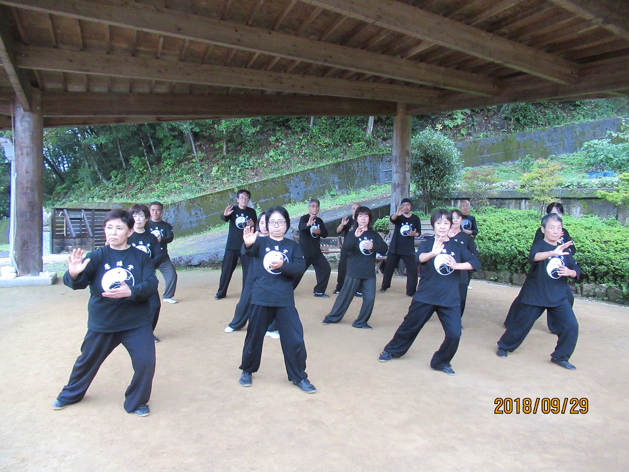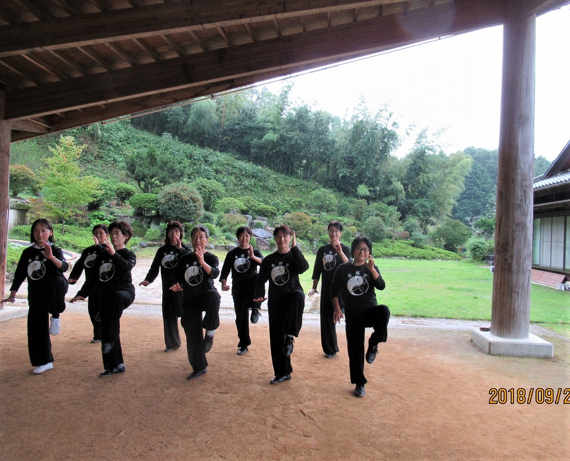 9月最終土曜日の29日、台風24号が明日にも接近する予報の中、「太極山荘廉譲堂」には十六名の太極拳士が黙々と練習に励んでいます。