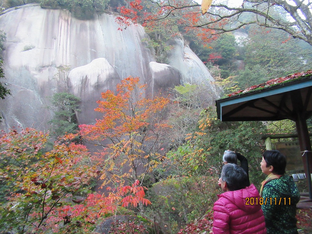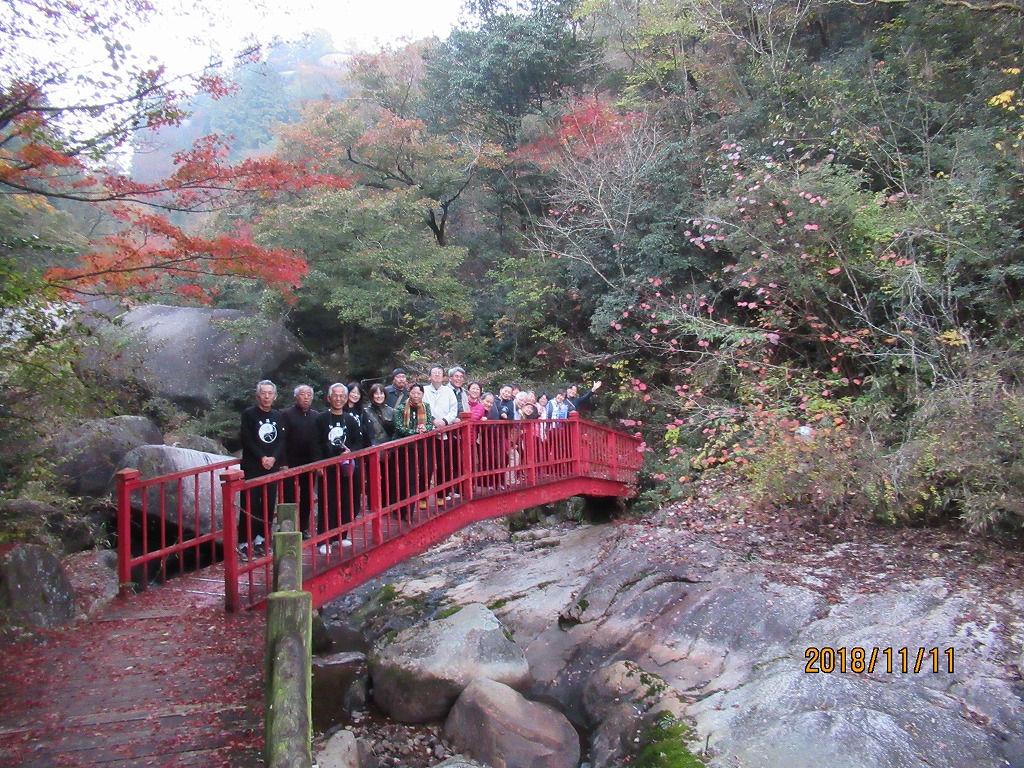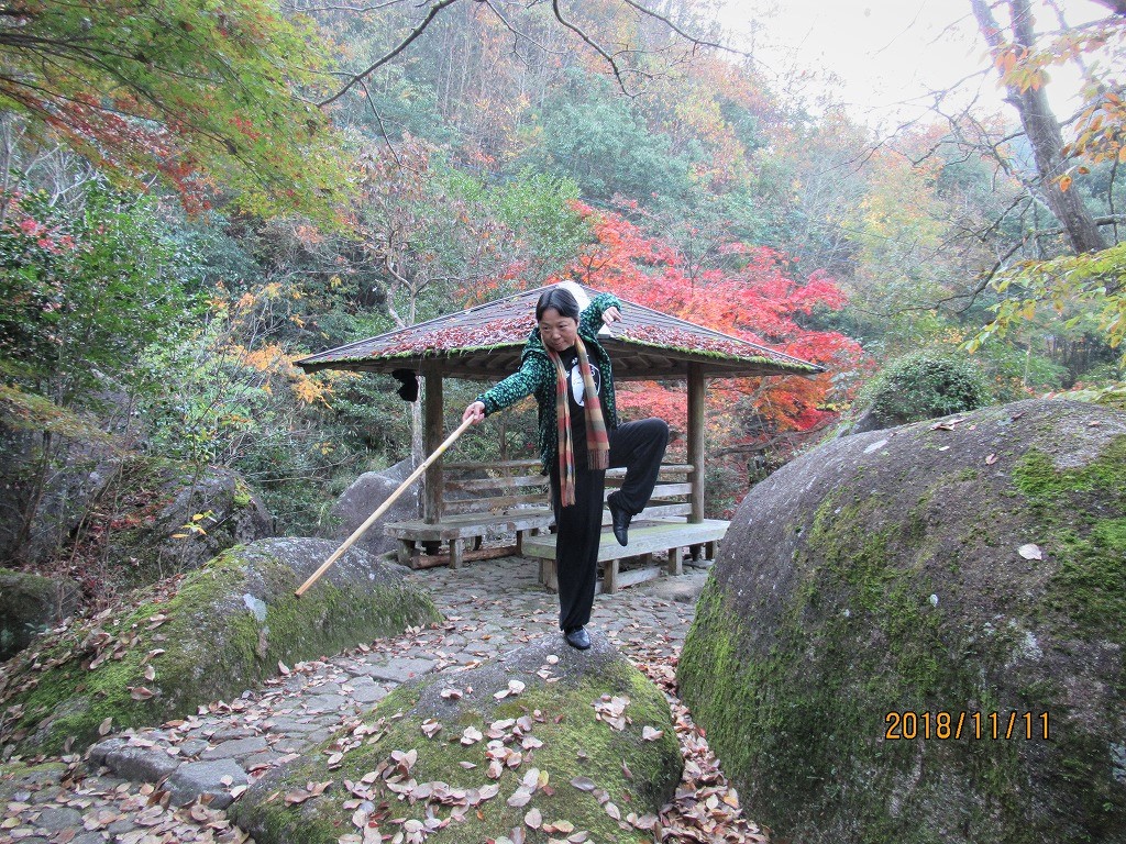 翌早朝鬼岩公園の渓流沿いを紅葉散策しながら「関の太郎」が