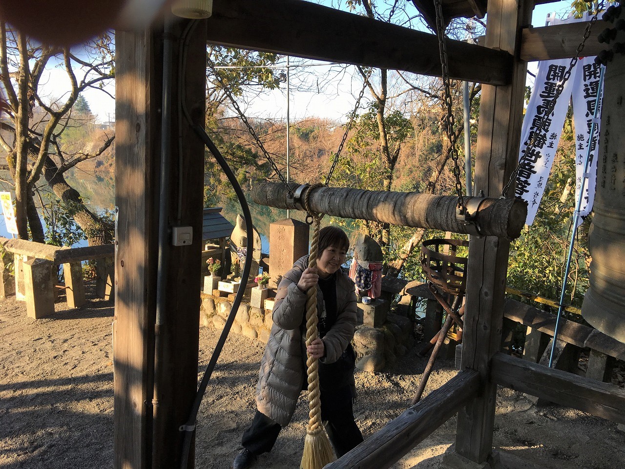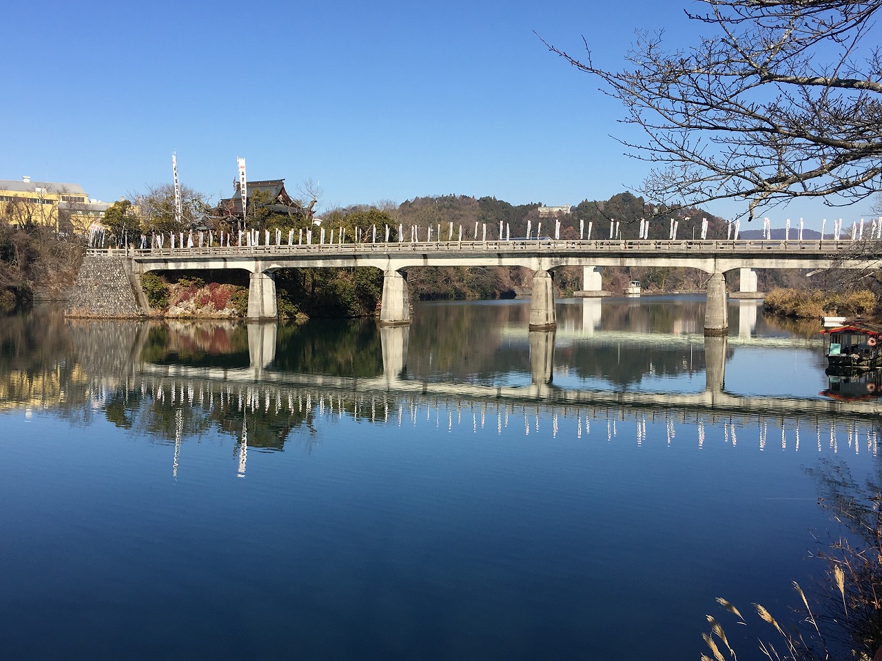 初詣し、万回練習を誓いました。飛騨川沿いの公園で鏡の如く穏やかに