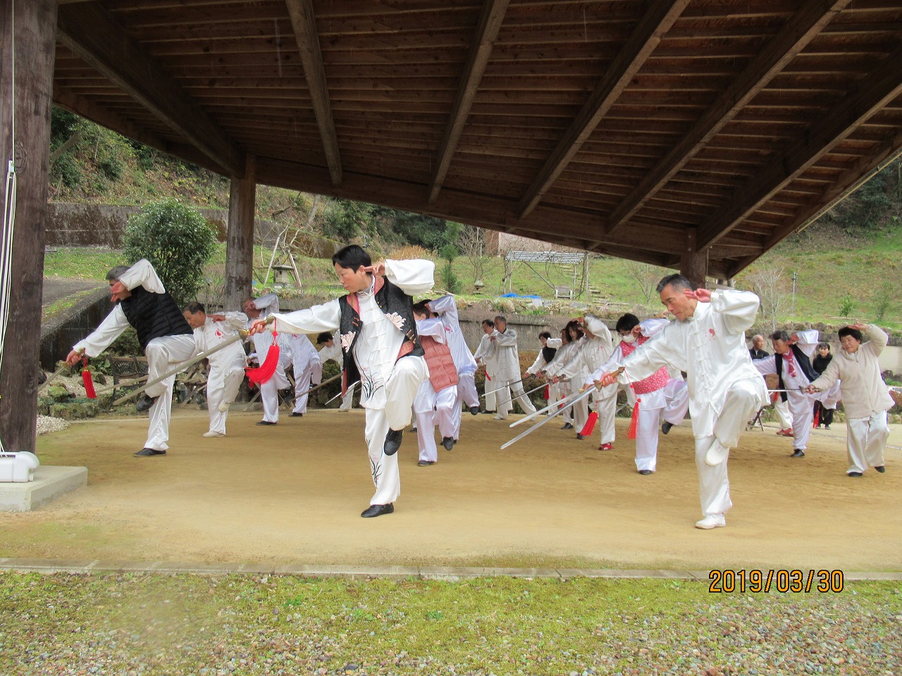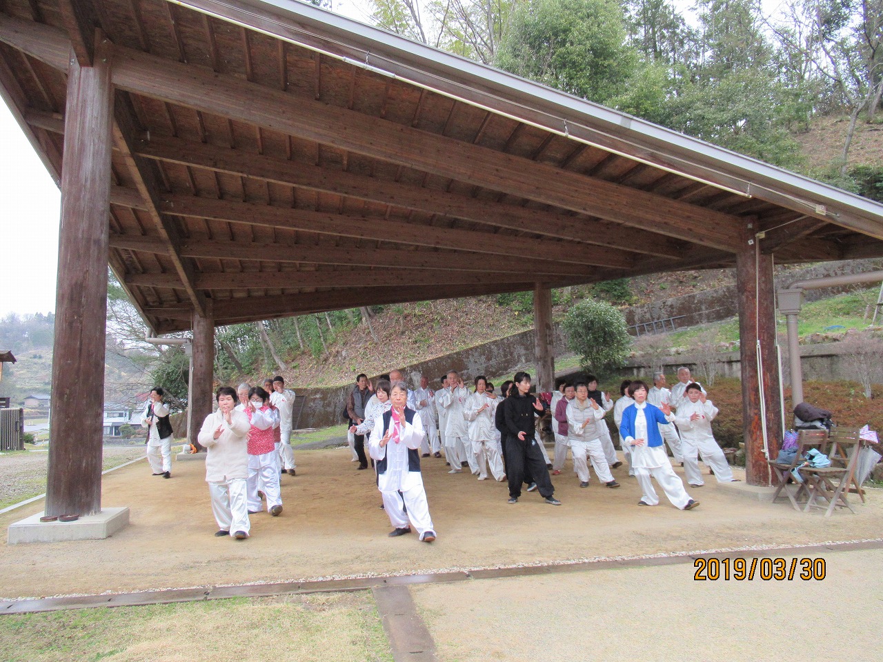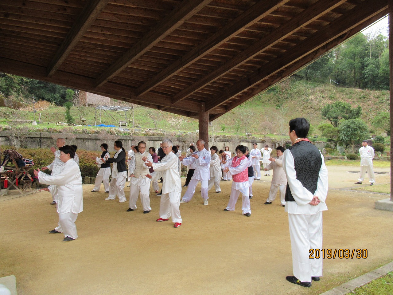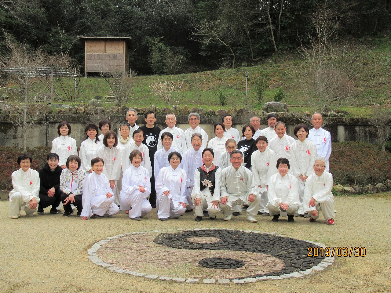 平成31年3月30日 廉譲堂太極山荘に33名の太極拳士が集い、お花見太極拳