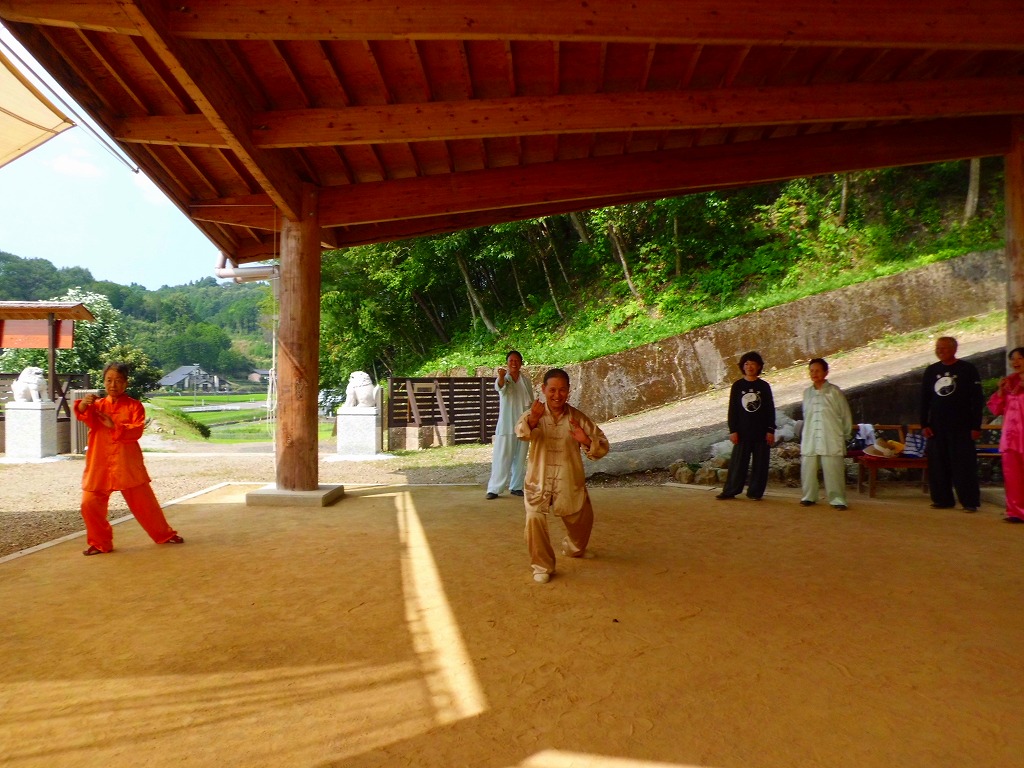 自然と共に生き太極拳練習に励む道場としてこの日の暑さも受け