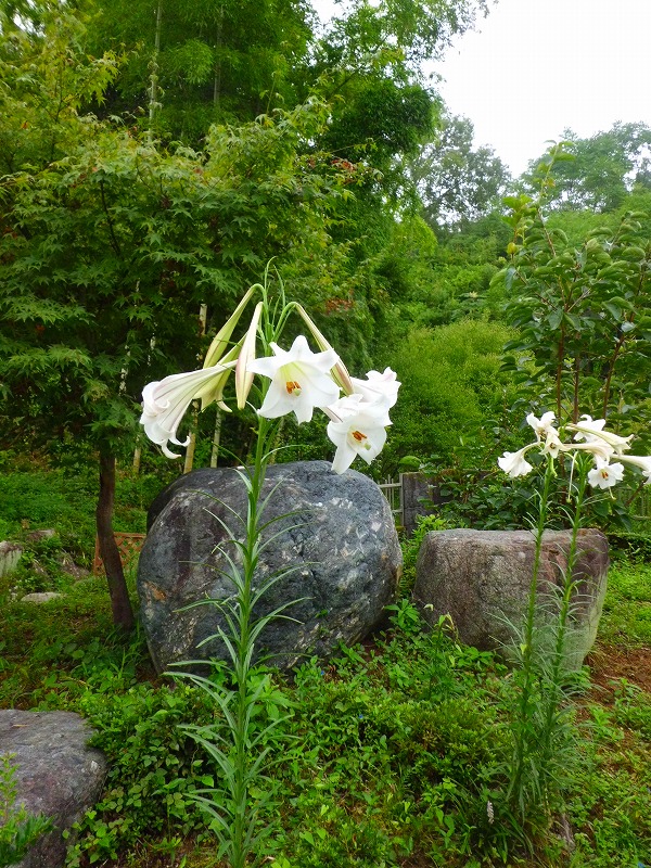 夏は各地で花火大会が開催されます、山荘もユリの花が花火を