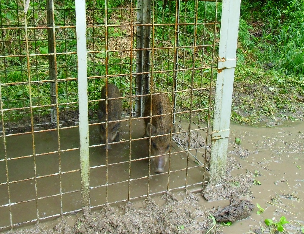 山荘隣で捕獲された猪 今年は随分と山荘内を耕し