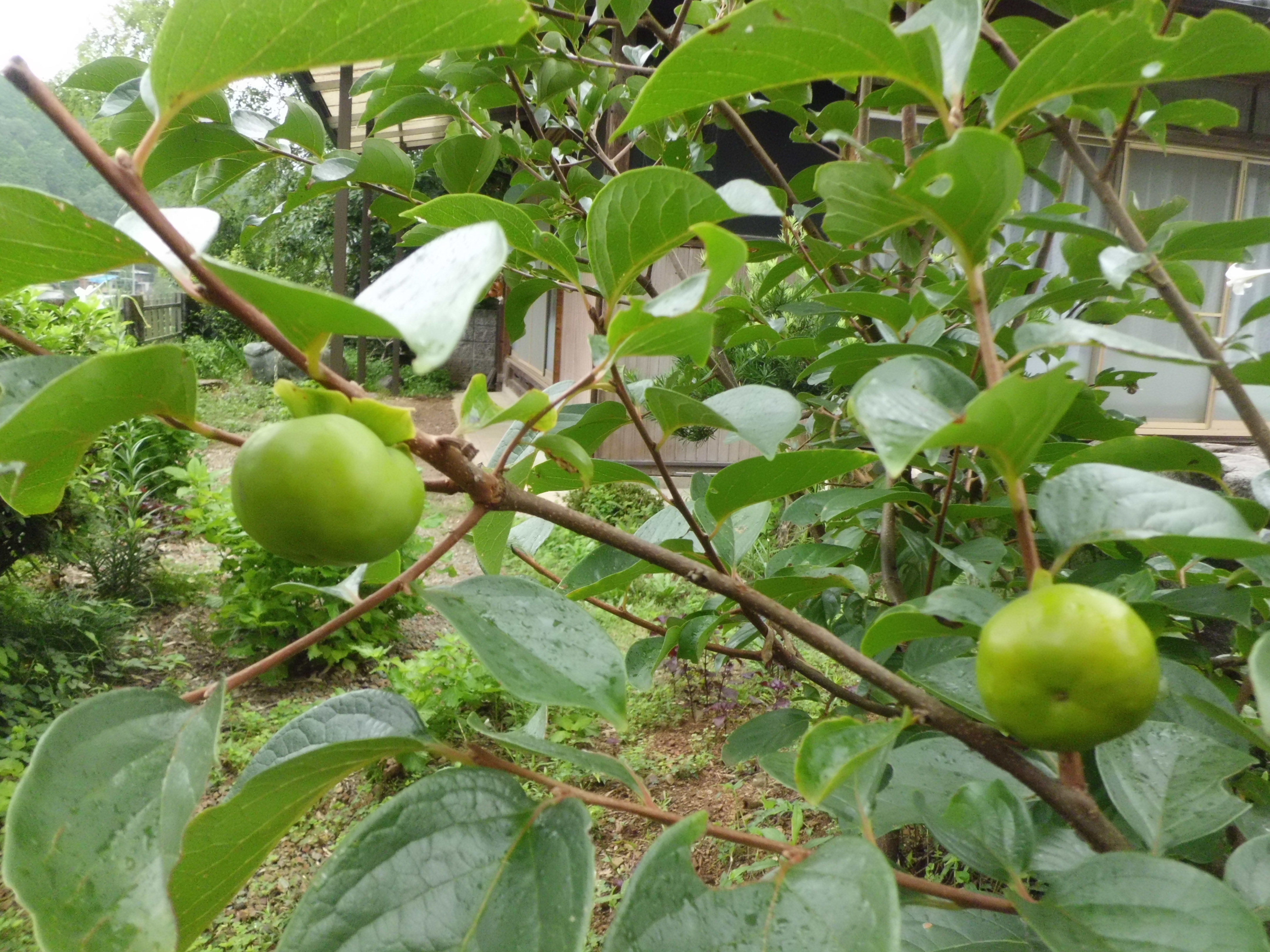青々した青年の 栗、柿、稲