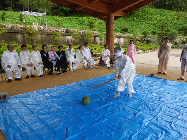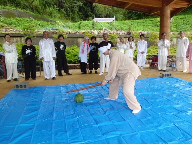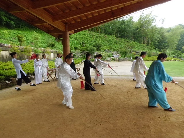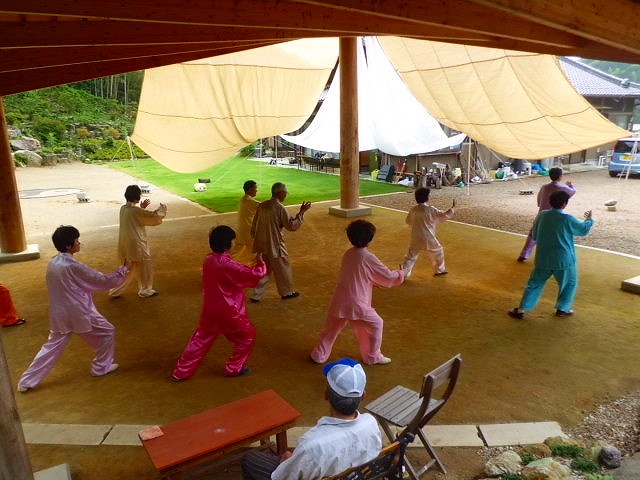自然と共に生き太極拳練習に励む道場としてこの日の暑さも受け