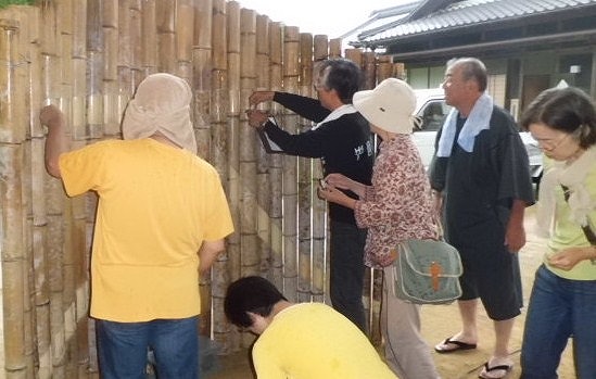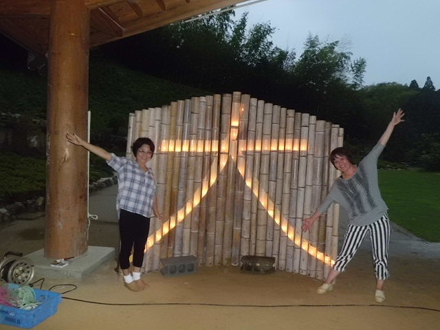 手作りの竹材を組み合わせると「大」の字が現れ、
