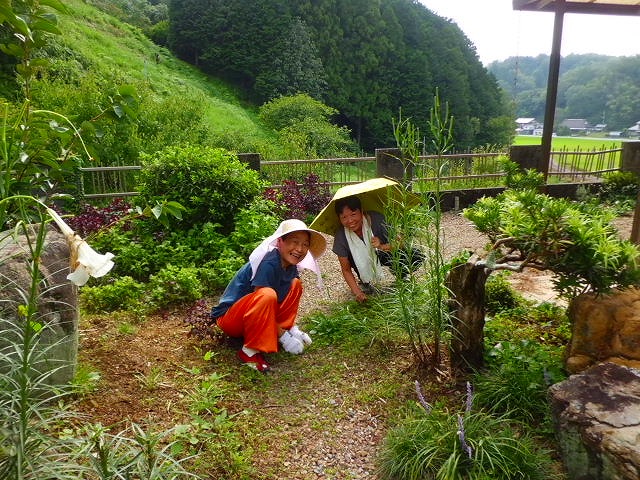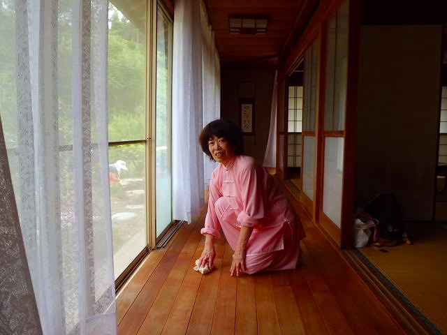 皆さんで夏草刈り、併せて廊下拭き、皆さんの協力で快適な道場が維持されました。