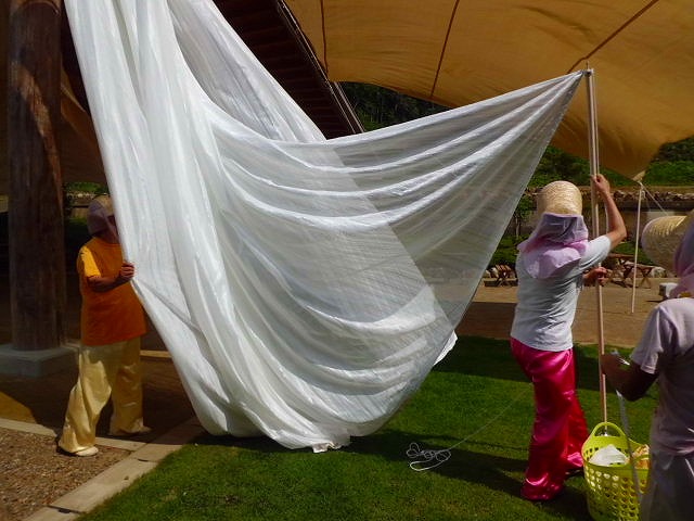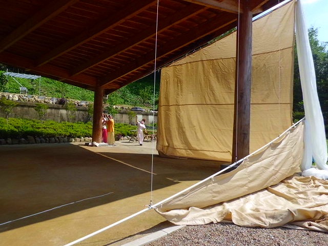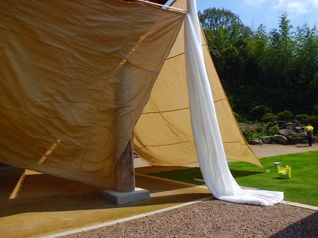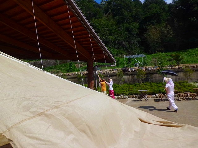 練習場に午後から差し込む日差しを大型帆布で遮るものです。