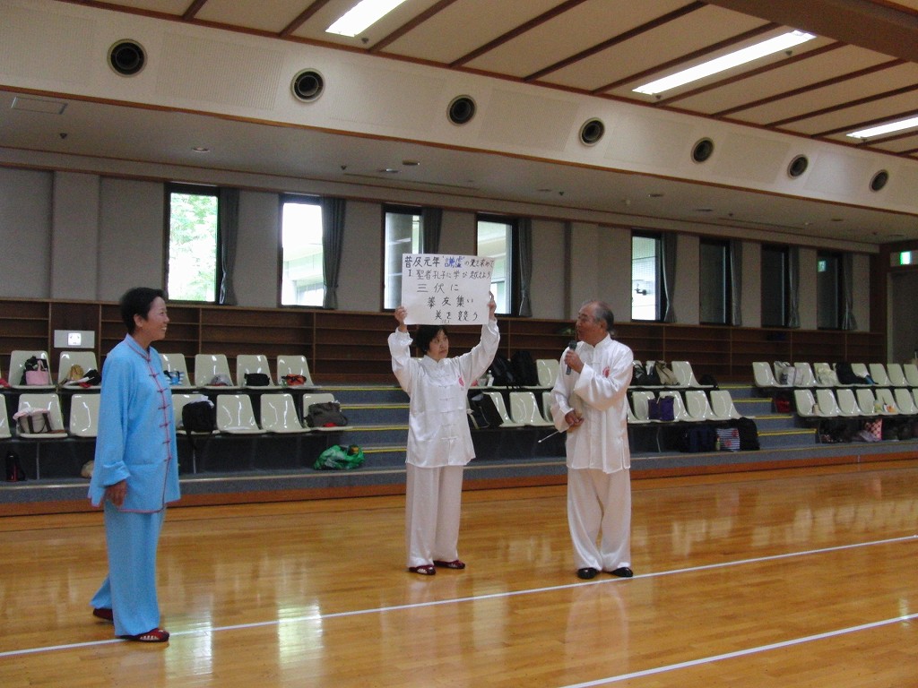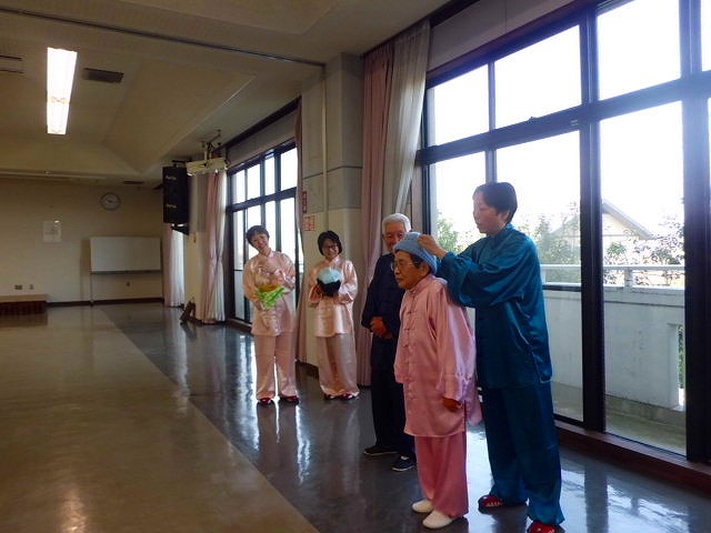 会長から太極拳を学ぶ上で年齢との関係は10歳、20歳、30歳はヒヨコで 先輩諸氏をお手本に学ぶ 事。40歳、50歳、60歳は入門。70歳、80歳、90歳は練習盛り。100歳はやり放題、自分の好きな ように行ってくださいとのこと。 120歳からまた初心に戻る、、、、 何と質の高い人生ですね。