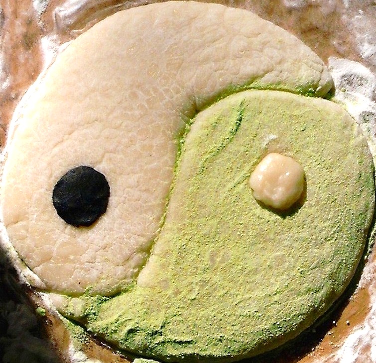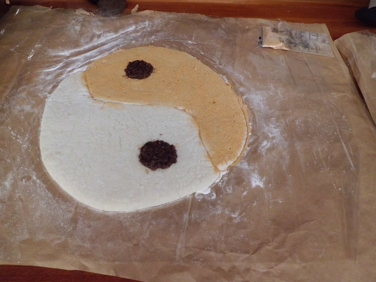 お餅で太極拳陰陽図を作ってみました。
