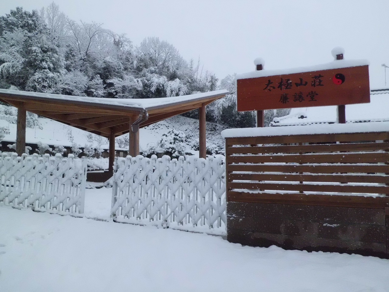 2月8日は日本全国大雪に見舞われました。ここ美濃加茂「廉譲堂太極山荘」も例外ではありません。