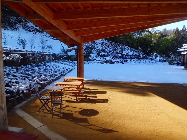 お昼に餅つきが無事終了すると同時に小雪が舞い始め辺りは見る見る雪景色。