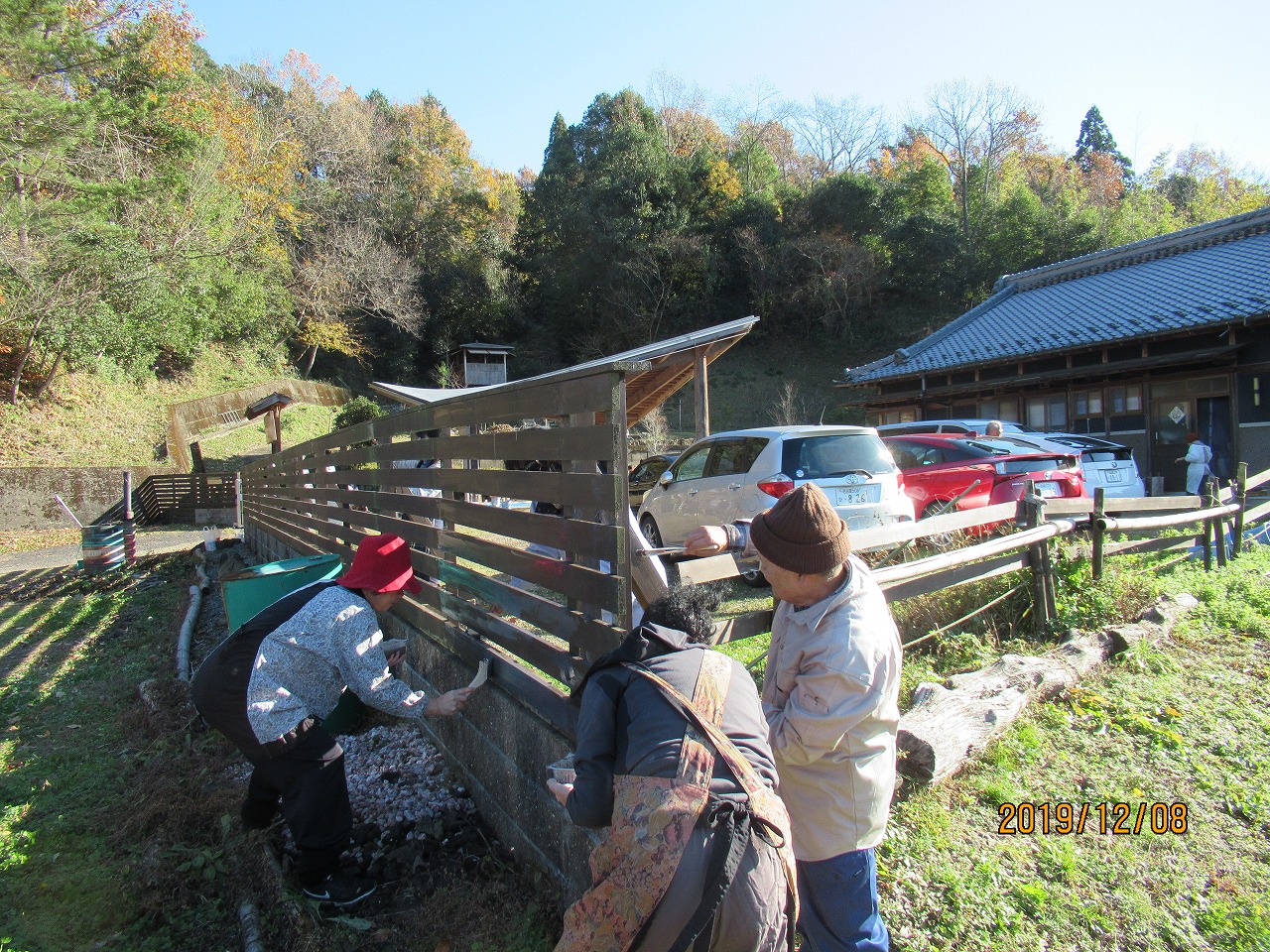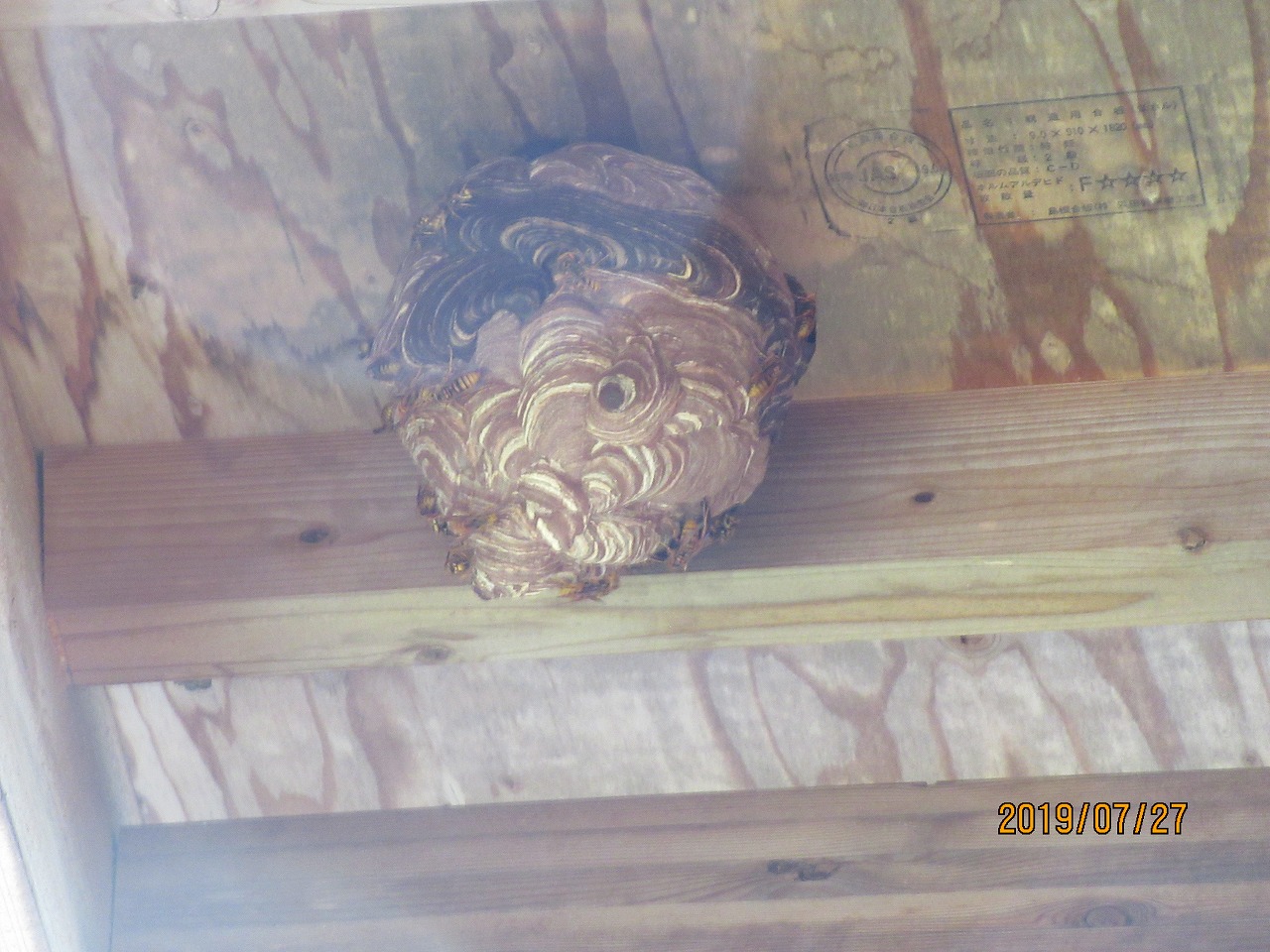 自然との共存は雑草取りから始まります。最近、道場の周辺をスズメバチが巡回する姿を目撃し、巣の存在を疑っていましたところ、何と屋外道場の屋根裏に巣がある事が確認され、蜂取り名人プロの酒向さんに駆除をお願いし無事終了しました。