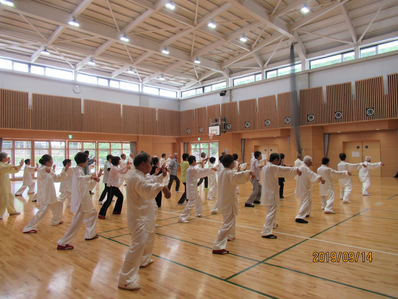 湯元館大広間で楊式太極拳、武式太極拳、剣の総合練習を行い全ての行事が終了し、これからも益々の練習を誓い帰路につきました。