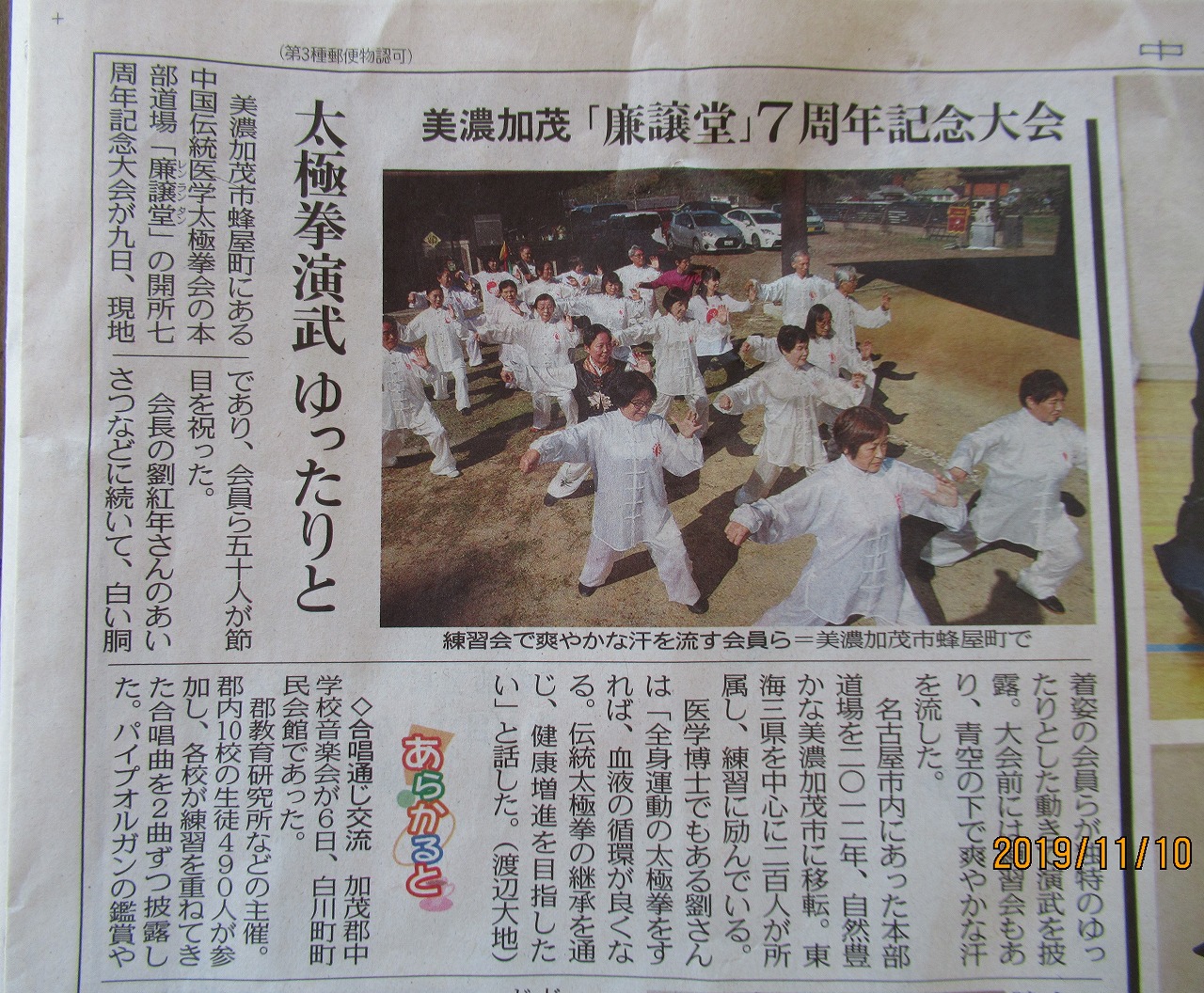 2019年9月14日、28日の2回に亘り安城市の明祥福祉センタ-で開催されます。初日の14日には40名近くの参加者が劉紅年会長との久しぶりの再会に感激です。