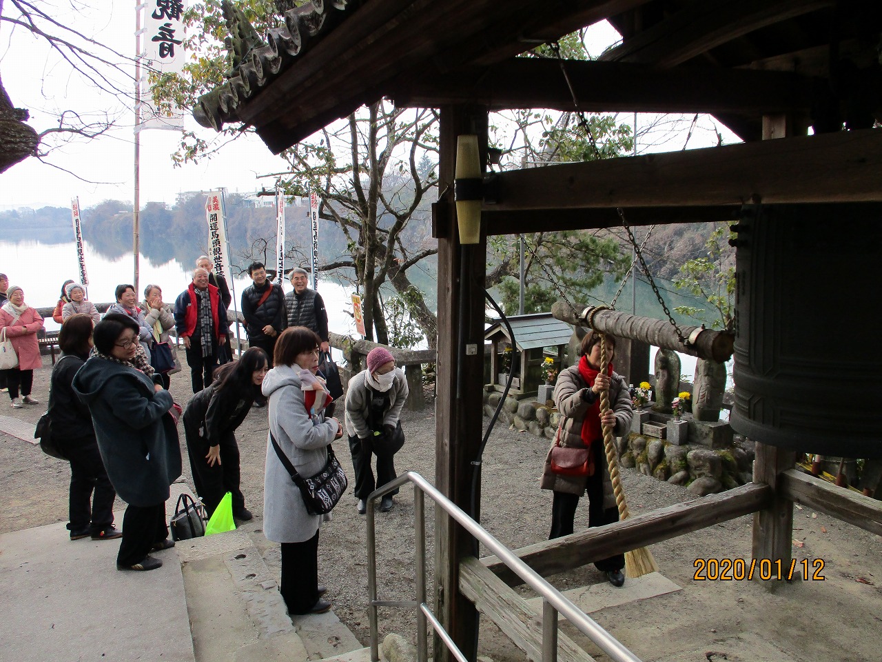 小山観音で突く鐘の音は静かな山里に、川面に流れ、突く人の性格が表れるという。今年も楽しみにして一番先に突いた。