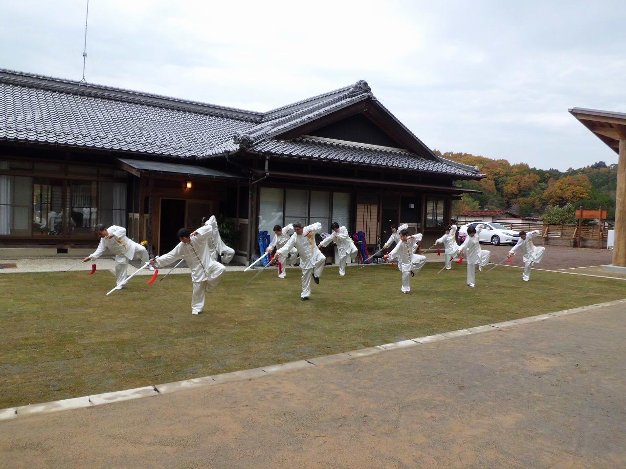 早速全員による伝統楊式太極拳、伝統武式太極拳、剣の奉納練習です。