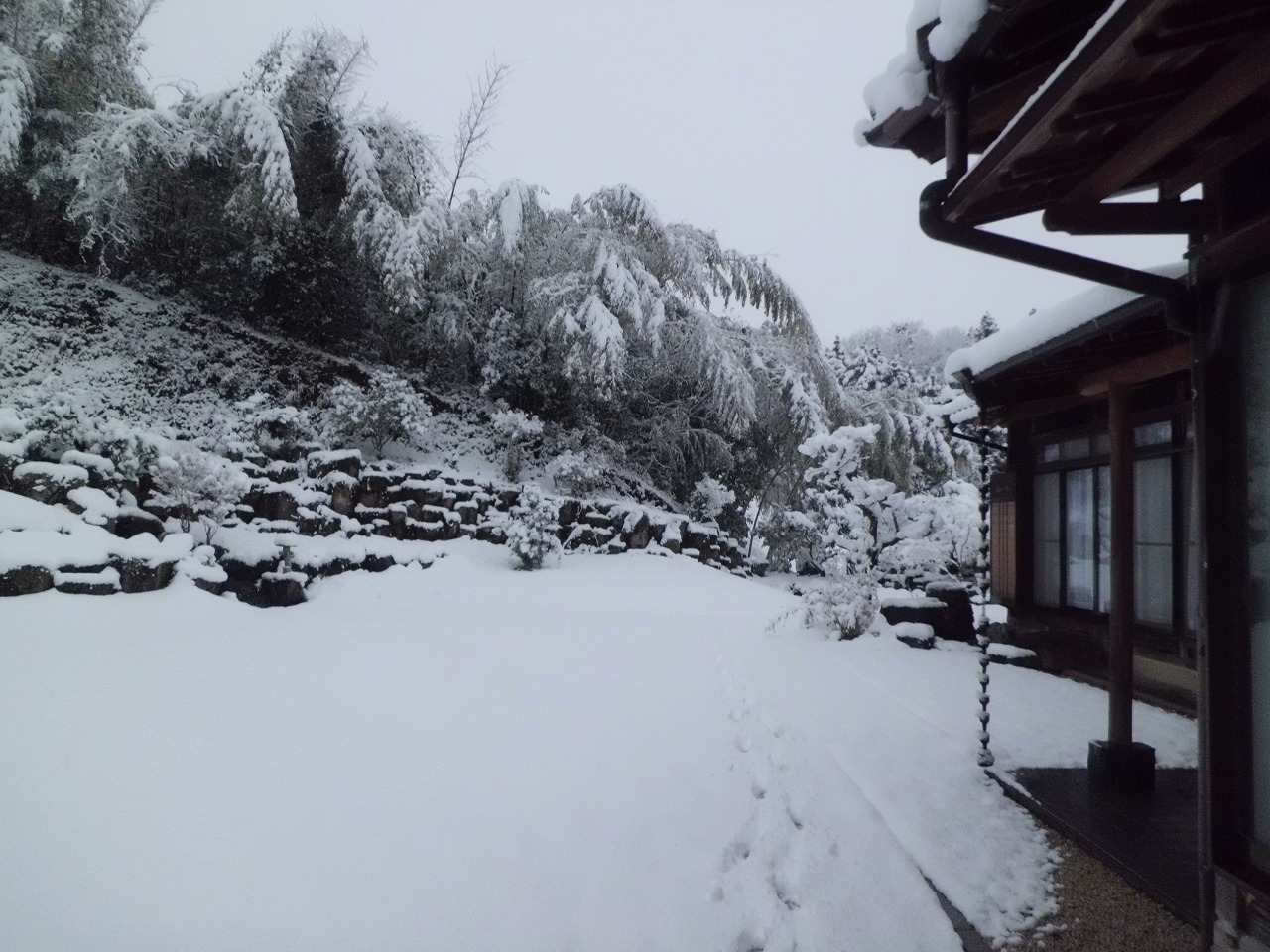 お昼に餅つきが無事終了すると同時に小雪が舞い始め辺りは見る見る雪景色。