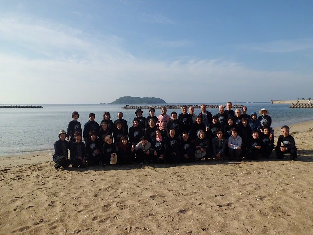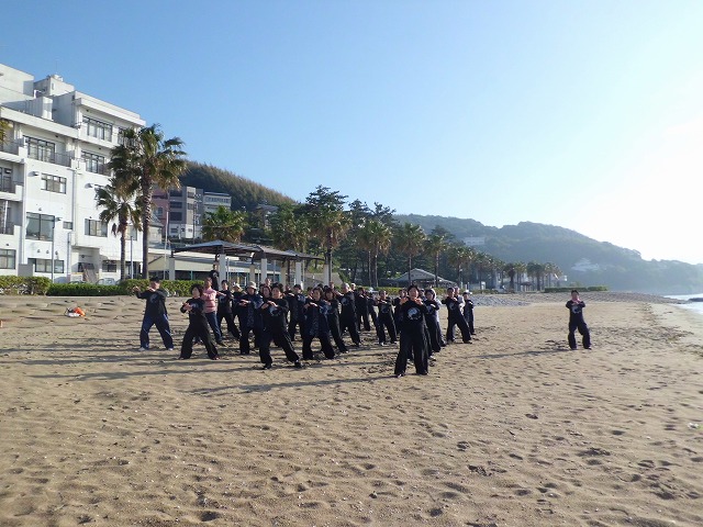 翌朝、昨日とは打って変わった晴天の砂浜で早朝練習、浜風が何とも言えない心地よさです。