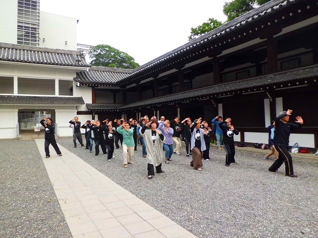翌朝は早朝より東本願寺境内で太極拳朝練です。境内の玉砂利も太極拳士には心地よい足場であったようです。