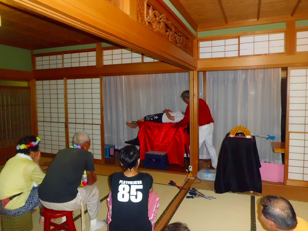最後のまとめは劉会長による「大文字・五重塔」を、拳友が剣舞する中、吉野さんたちは身体で表現する大の字に会長が五重塔を演じる大パフォ-マンスです。
