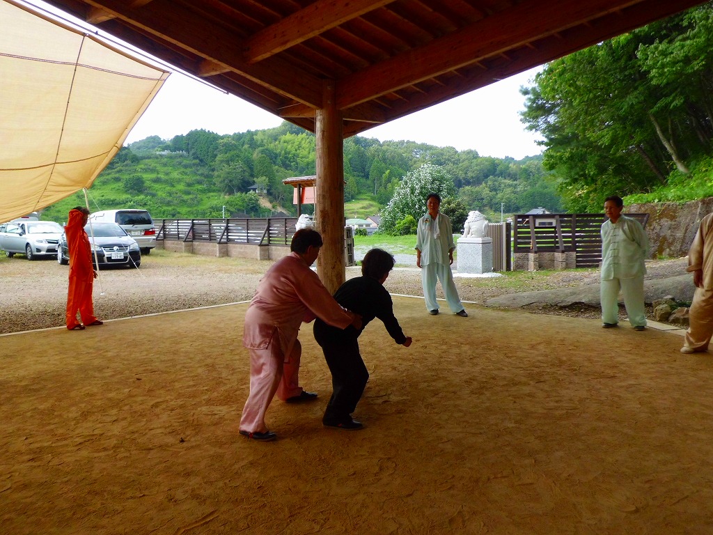 会長から永年県で中国側の推手演武を技術面から解説、改めて足、腰、手の重要性を認識する。