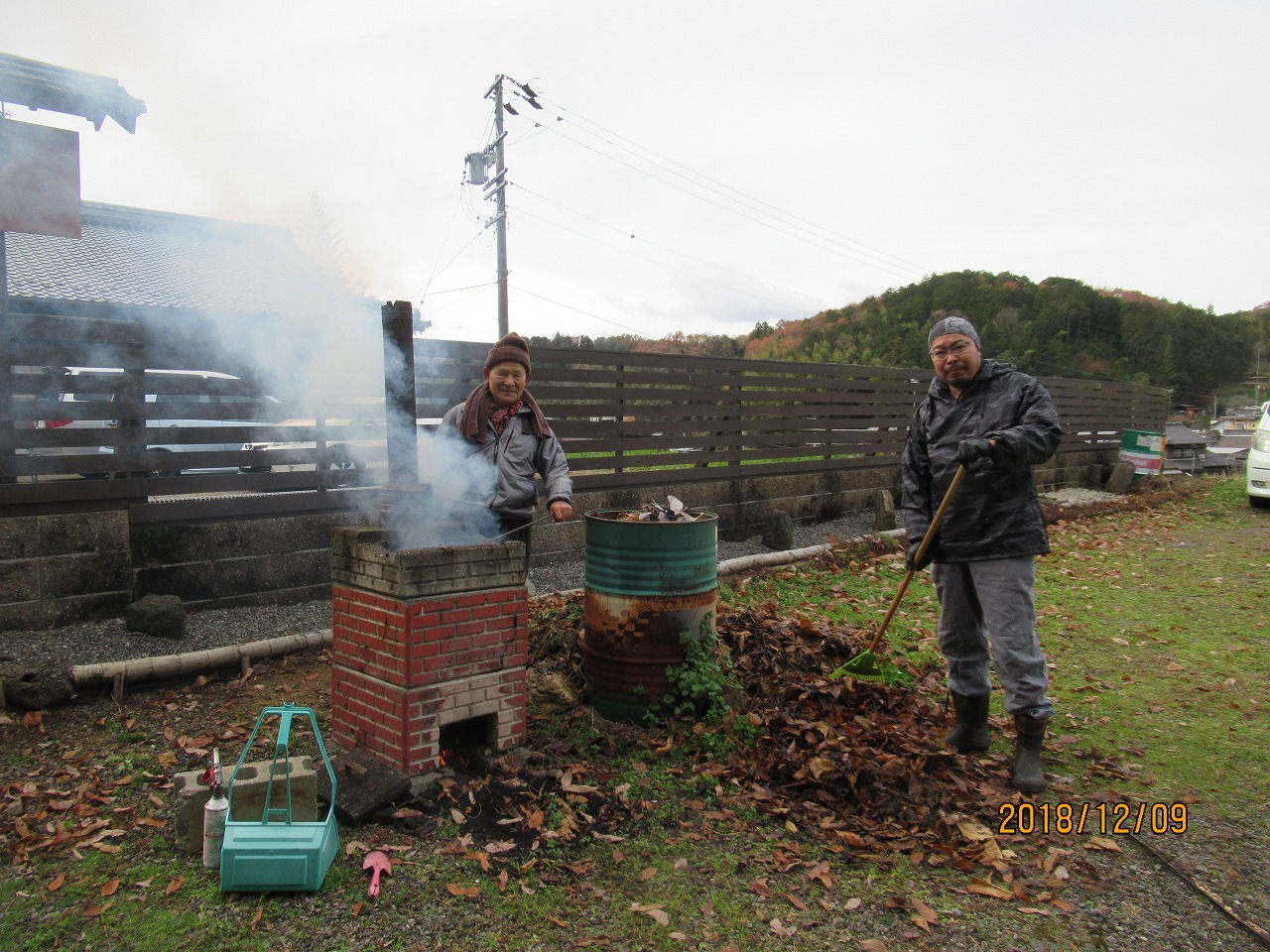 併せて道場の窓拭き、清掃、枯葉の焼却と今年の総ざらいをしました。![]()