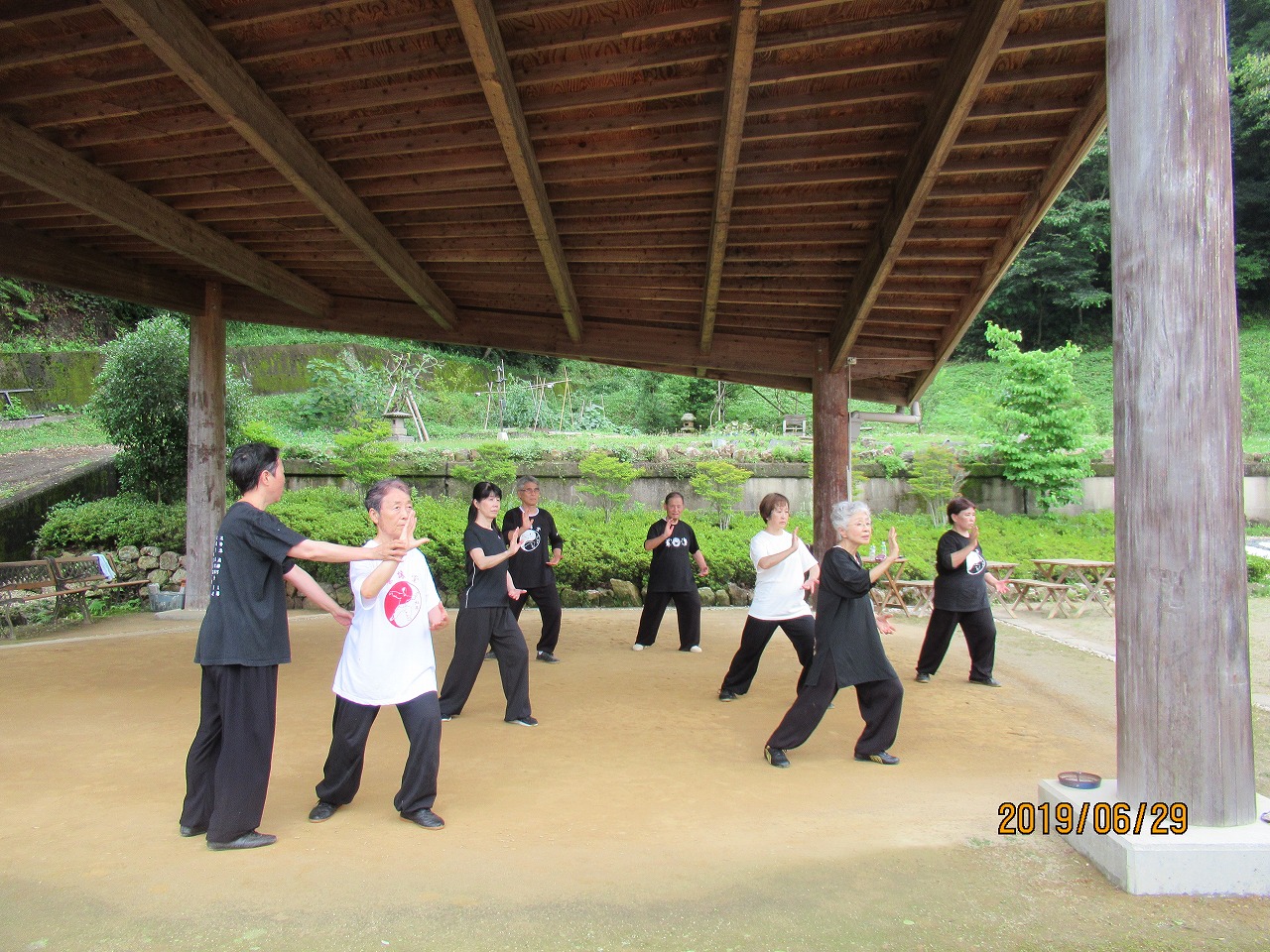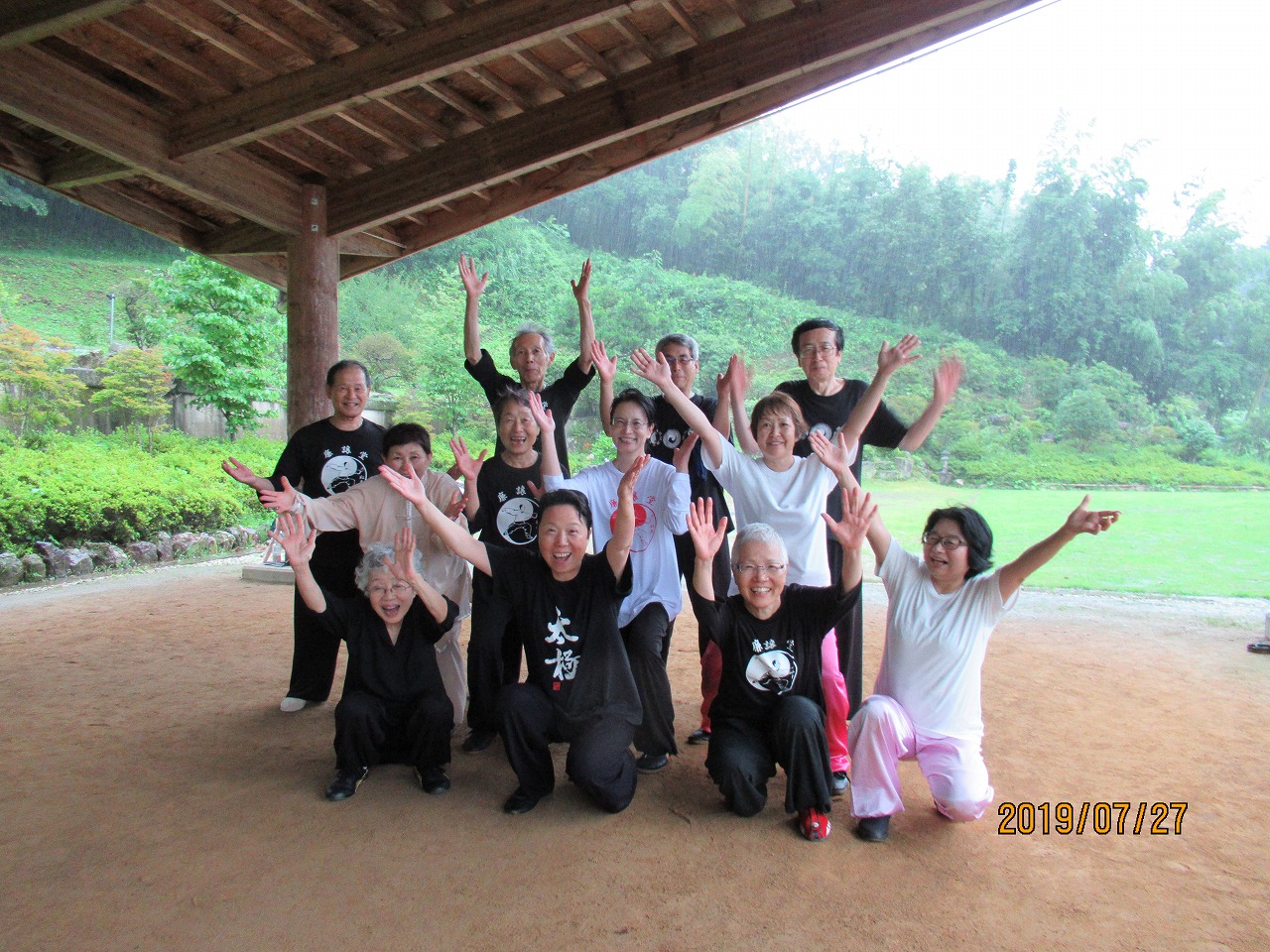 27日は台風6号が東海地区へ接近上陸すると予想され各地の夏祭り、花火大会が中止される中、山荘では雨風が最近の猛暑を払うが如く太極拳士が淡々と練習に励んでいます。自然と共に練習する道場として季節の変化は太極拳の心、そのものです。