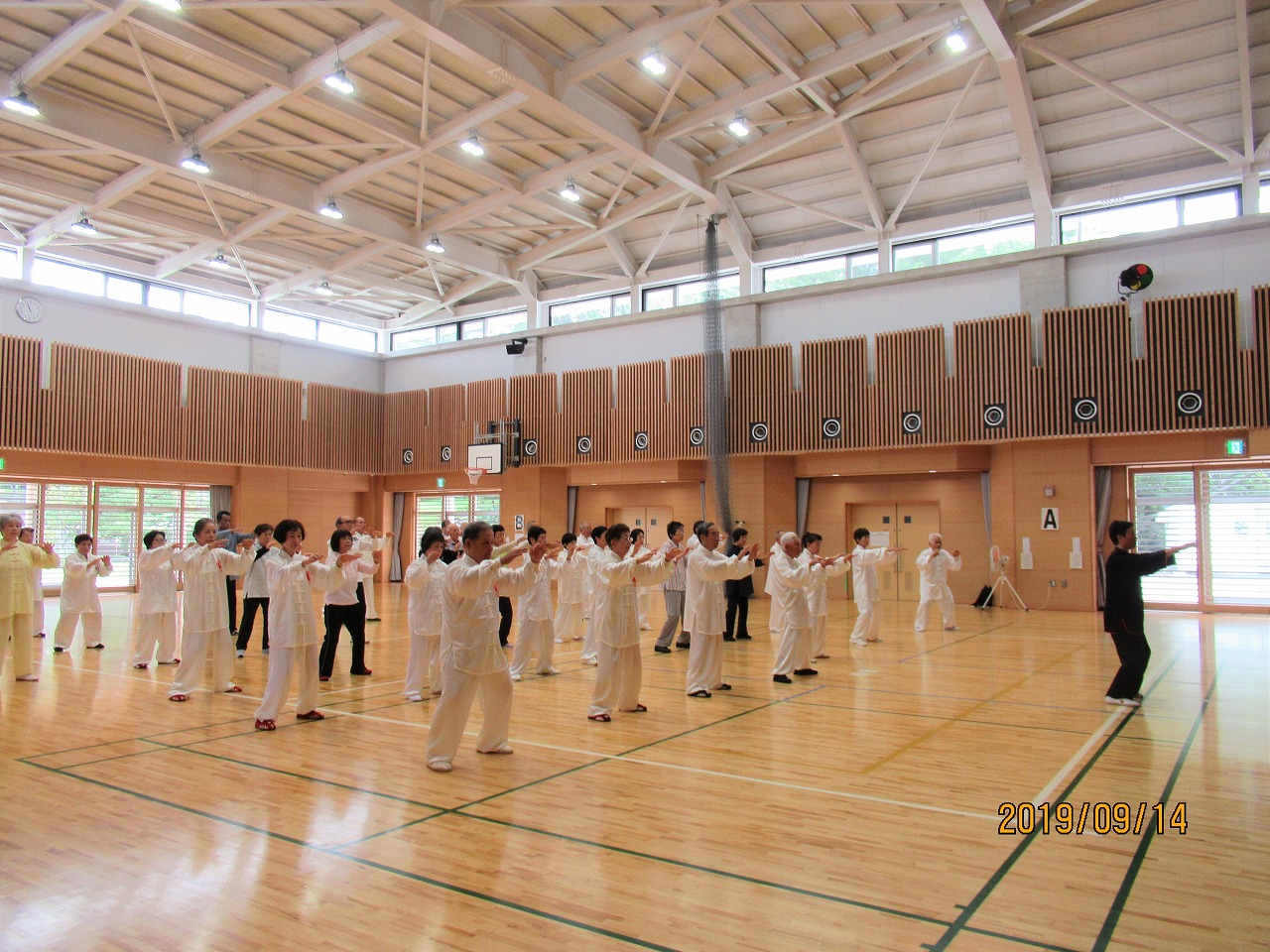 9月最終土曜日の29日、台風24号が明日にも接近する予報の中、「太極山荘廉譲堂」には十六名の太極拳士が黙々と練習に励んでいます。
