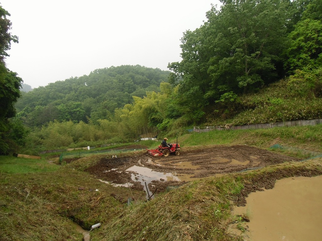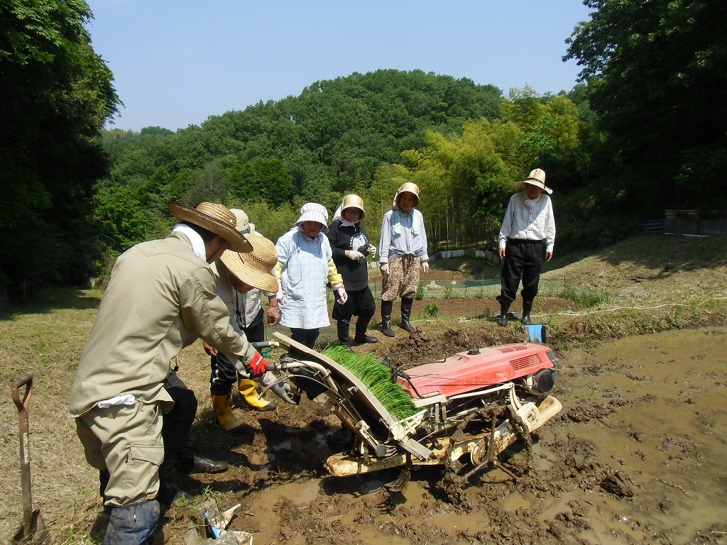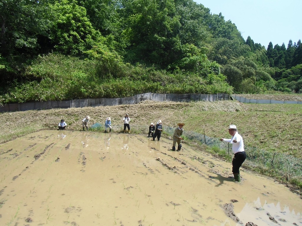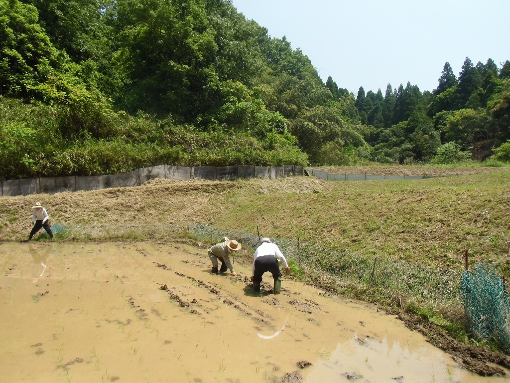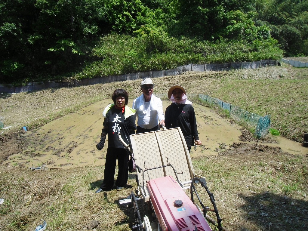 田植えを行いました。地元の勉さん、ご両親から水田を