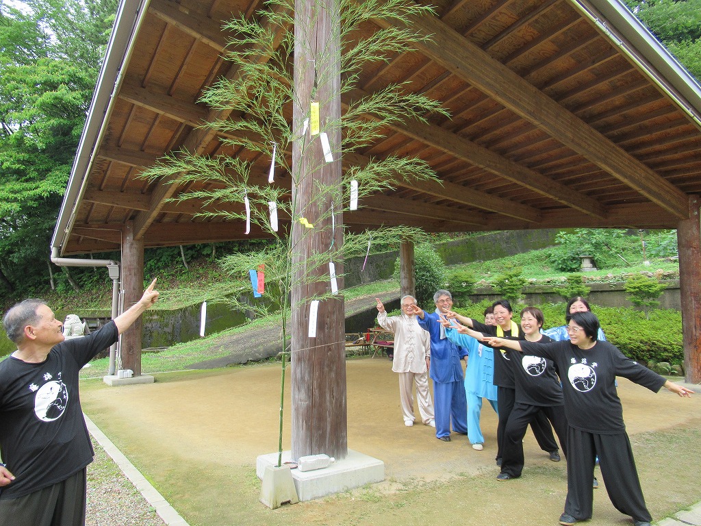 太極拳で重要なのはとめどなく流れ変化することです。廉譲堂太極山荘で季節の移ろいを肌で感じ万回練習に励む皆さんが季節の変化を楽しむ一時、7月に入り七夕飾りの短冊に願い託しました。emoji