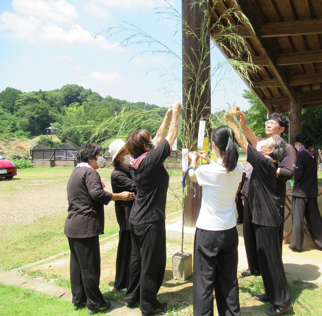 梅雨明け初日の土曜日、廉譲堂太極山荘では七夕飾りに太極拳練習への