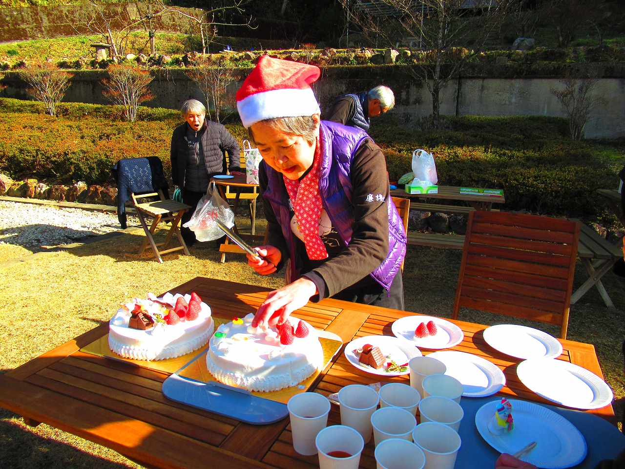 クリスマスケーキのプレゼントに皆さん至福の笑みで楽しく頂きました。