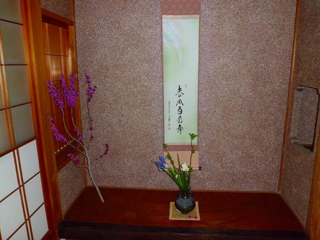 春の息吹を感ずる山荘で皆様のご協力の下で茶会を催しました。