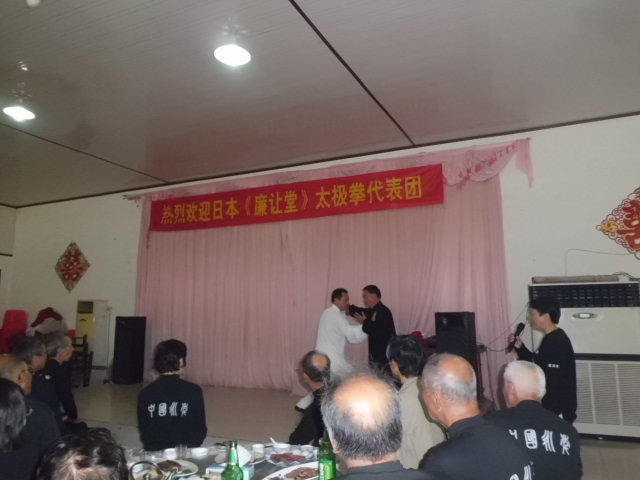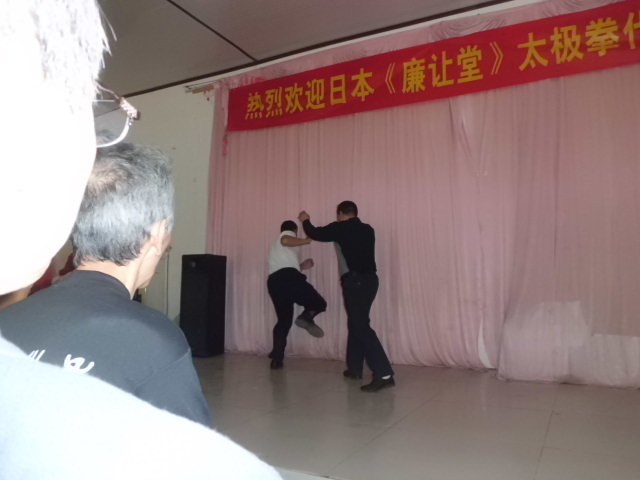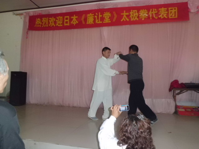 昼は地元の拳友との懇親会が催され中国側からは推手、剣などの演武披露。